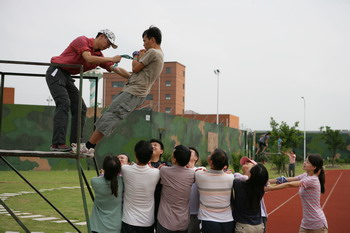 在活动过程中,参训同志都显示出良好的精神状态。通过此次拓展训练,老师们纷纷表示:自己在完成几个极富挑战的拓展训练项目中,深刻体会到了勇气、信任、团队、协作展示出来的巨大力量及超越自我获得成功后带来的满足和快乐,对自己思考和处理工作、生活中遇到的问题带来有益的启示。 (学工部 王桃珍)
