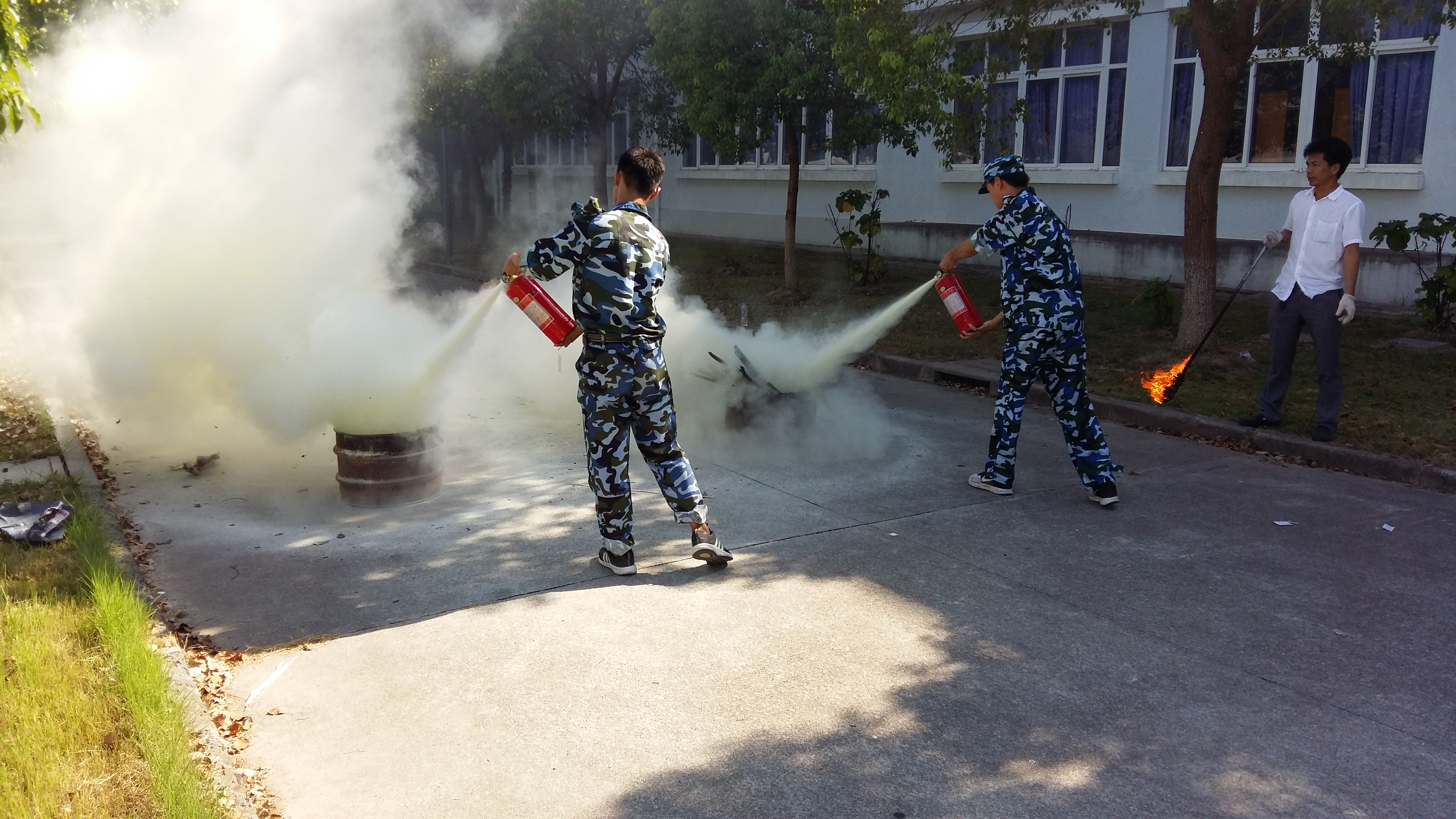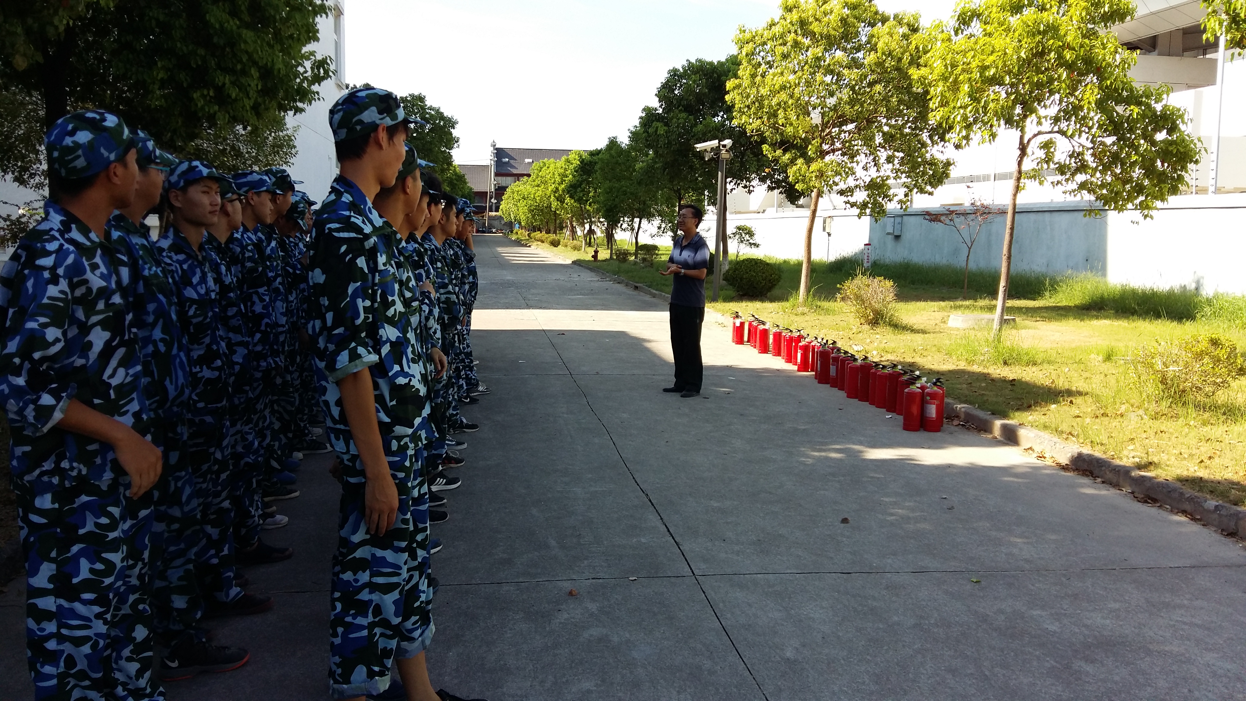 为增强师生灭火技能,提高在发生火灾时的应对能力,8月21日下午,学院安全保卫处、武装部组织部分军训学生及辅导员,开展了消防灭火演练。学院副院长吴依本、武装部部长蔡军林及师生代表参加了活动。 学院安全保卫处熊跃辉老师首先强调了学习消防知识及技能的重要性,并演示了干粉灭火器的操作步骤。参加演练同学依次使用干粉灭火器进行了灭火操作,在实际演练中加深了对消防知识的理解,提升了运用消防器材的实践能力。 武装部部长蔡军林作了简短总结。要求同学们增强消防安全意识,提高应对能力,牢记灭火器材的操作步骤及使用方法;并鼓励同学们在军训过程中起模范带头作用,在教官带领下,刻苦训练、磨炼意志,同学之间要相互关心、相互鼓励,圆满完成军训任务。