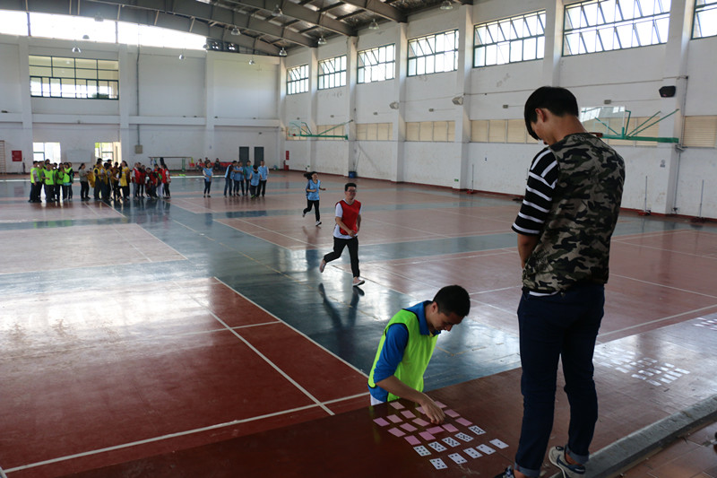 初夏的田径场风和日丽,红、蓝、黄、绿四色队衣在蓝天下显得格外鲜艳夺目。随着破冰游戏“进化论”的开始,现场气氛逐渐活跃。随后进入了第一个项目“指压板挑战”。教练要求每个团队的成员以接力的形式在指压板上完成挑战,用时少方获胜。过程虽然“痛苦”,但大家十分开心地完成了任务,团队的决策能力、成员的沟通意识和思维方式都得到了得到了增强与锻炼。接下来是“群龙取水”,小组成员在同伴的帮助下,依次从距离端线约2米的地方取到放于地面的饮用水。合理的分工合作、团队成员的密切配合使得任务很快完成,大家在分享体会时再次强调了合理配置资源的重要性。第三个项目“动力绳圈”可谓难度最高,所有人握住绳子围成一圈,手臂同时做“上、右、下、左”的动作,让绳子在面前绕圈。当教练发出指令要求所有人一起完成1000次绕圈时,大家认为这是不可能完成的任务。然而,在教练将任务分解后,100次、200次、300次、400次,最后大家真的完成了1000次!克服人性的弱点,不成功决不放弃,这个项目让每个人都体会到:相信自己,“奇迹”往往会在坚持中诞生。最后的“卡牌风云”核心在于“信息收集”和“信息整合处理”,考验了大家的执行力、自我控制能力和团队内部的信任感。