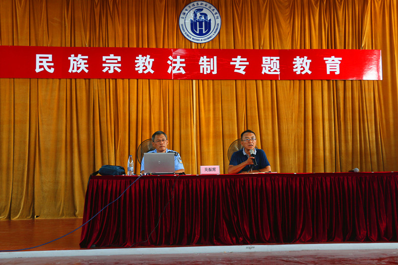为巩固和提高学校法制教育成果,增强我校师生的民族宗教法制观念,帮助师生了解和掌握党的民族理论和民族政策,树立社会主义法治理念和法治意识,养成遵纪守法的行为习惯,9月26日,我校邀请上海市奉贤公安分局高校派出所吴振霄警官来校进行民族宗教法制专题教育讲座。