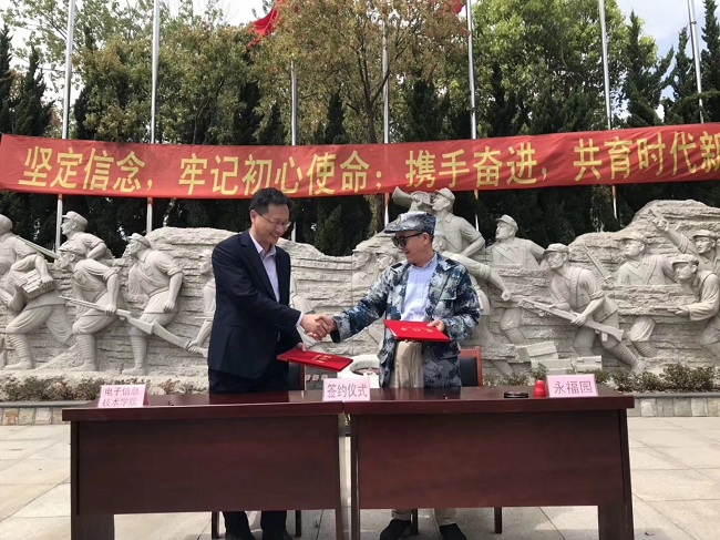 仪式上党委副书记、副校长张涛和上海永福园陵有限公司董事长徐渭岳共同签订了《上海电子信息职业技术学院实践育人基地共建协议书》,双方将进一步携手并进,开展丰富的实践育人活动。