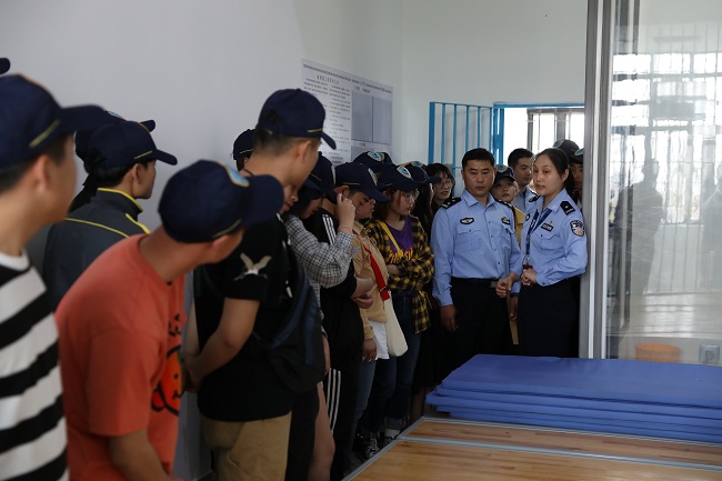 接着,在黄浦区拘留所所长的带领下,学生先后参观了拘留所的值班室、电教区、提审室、阅览室和拘留人员的活动、工作、学习等场所。