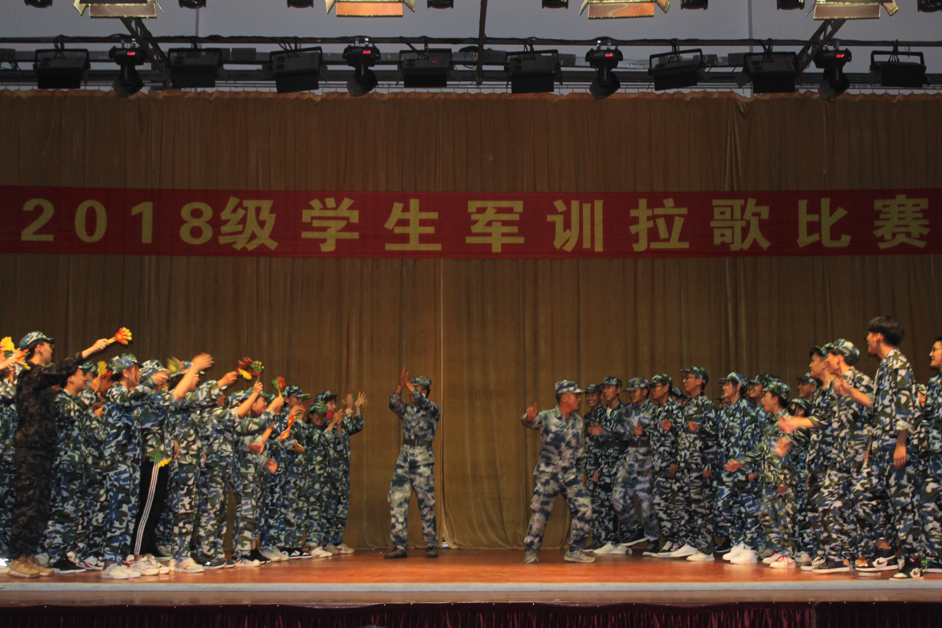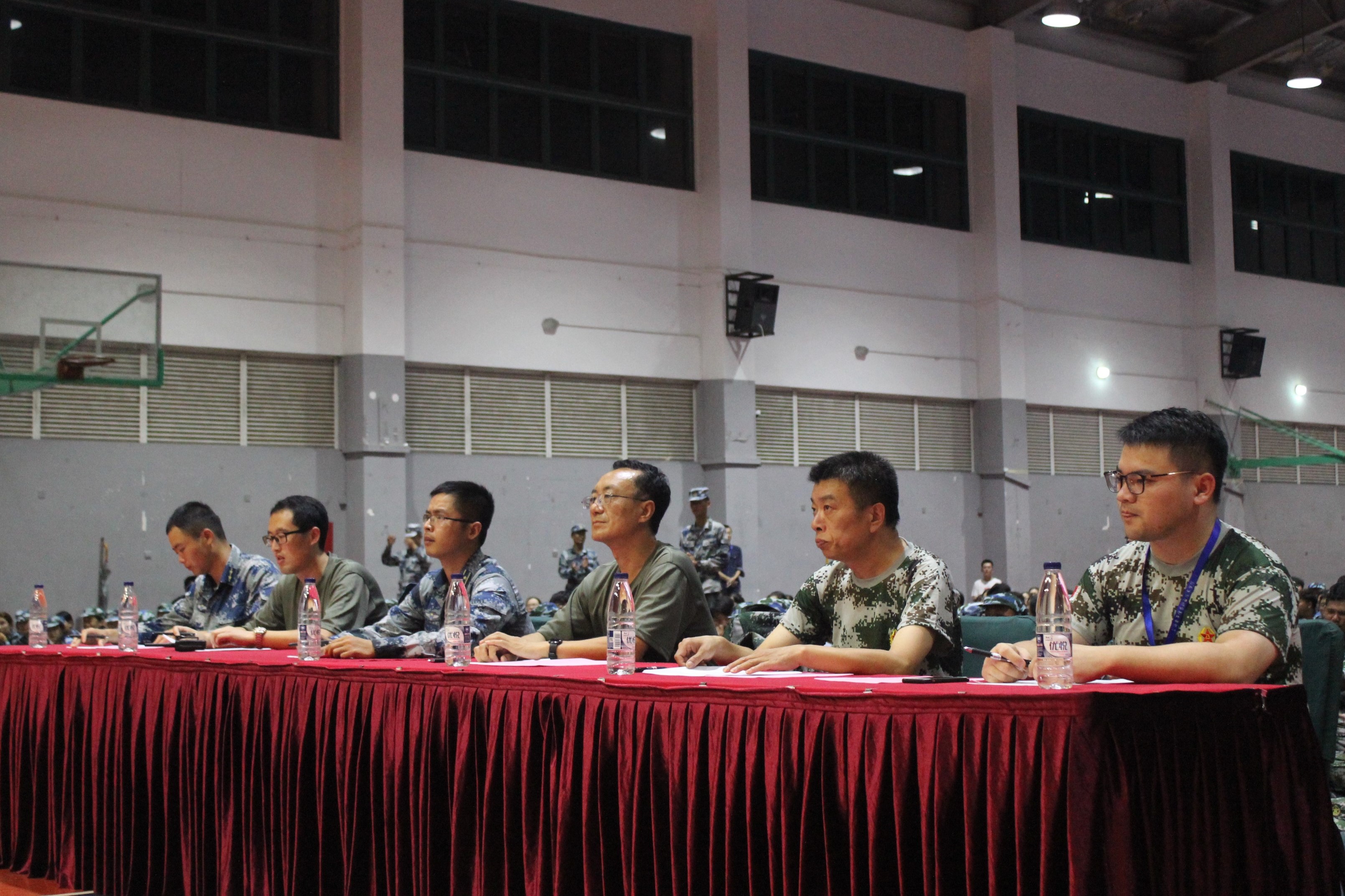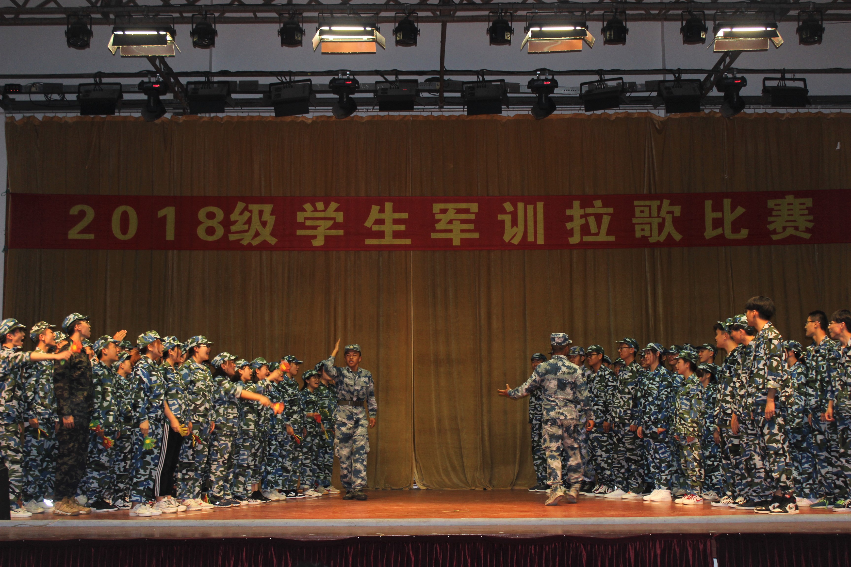 2019年9月7日,学生军训拉歌比赛在室内运动场举行。学校武装部部长、军训团政委蔡军林,部队领导林松、李天培,后勤保障处副处长程利康,武装部副部长、军训团参谋长吴奇峰、学工部邬晓斌等出席并担当评委,带队教官以及各营学生代表参加了比赛。 参训学生在教官的组织与带领下,踏着整齐的步伐,喊着响亮的口号依次进入室内运动场,精神饱满、士气高涨。随着主持人的一声令下,六个营分成三组依次上台进行比拼,同学们情绪高涨,呐喊声、助威声响彻整个运动场。教官带来的吉他弹奏《不再犹豫》、个人独唱《护花使者》,使整个拉歌比赛达到了高潮。经过激烈的比拼,一营荣获一等奖,二营、五营荣获二等奖,三营、四营、六营荣获三等奖。 在紧张训练之余举办的此次拉歌比赛,声声充满青春的正能量,展示着同学们饱满的精气神,促进了同学们之间的沟通交流,增强了团队凝聚力。相信在接下来的训练中,同学们一定会以更加坚强的意志、蓬勃的朝气,积极面对各种挑战。(供稿单位:学校武装部)