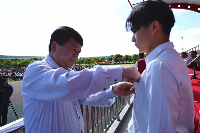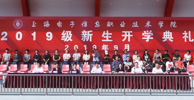 学校党委书记田钦为新生代表佩戴了校徽,象征着新生们正式开启了在上海电子信息职业技术学院的三年求学生涯。外语学院新生孙徽同学领誓,全体新生共同宣誓,庄严立下了他们的入学誓言。