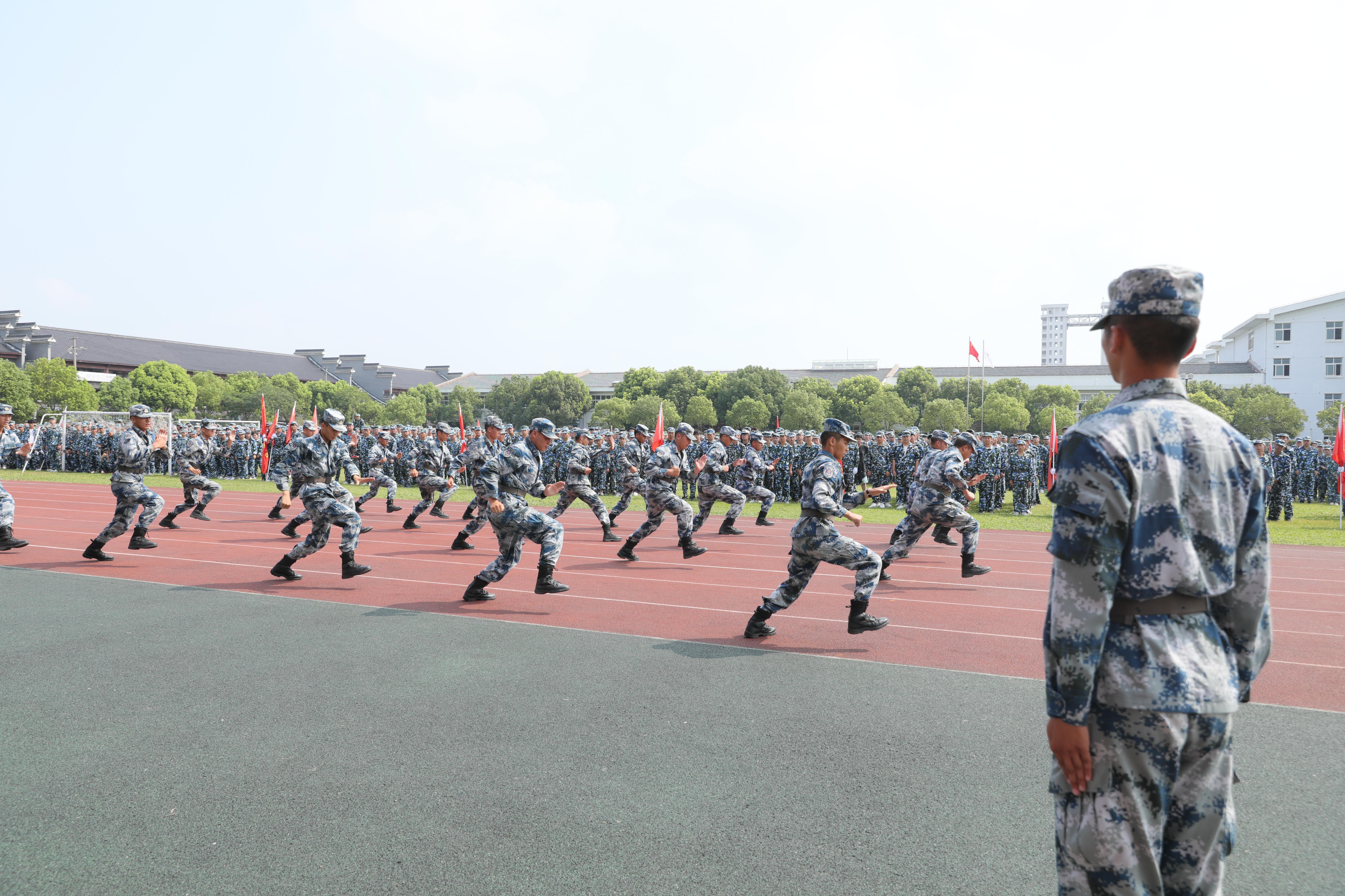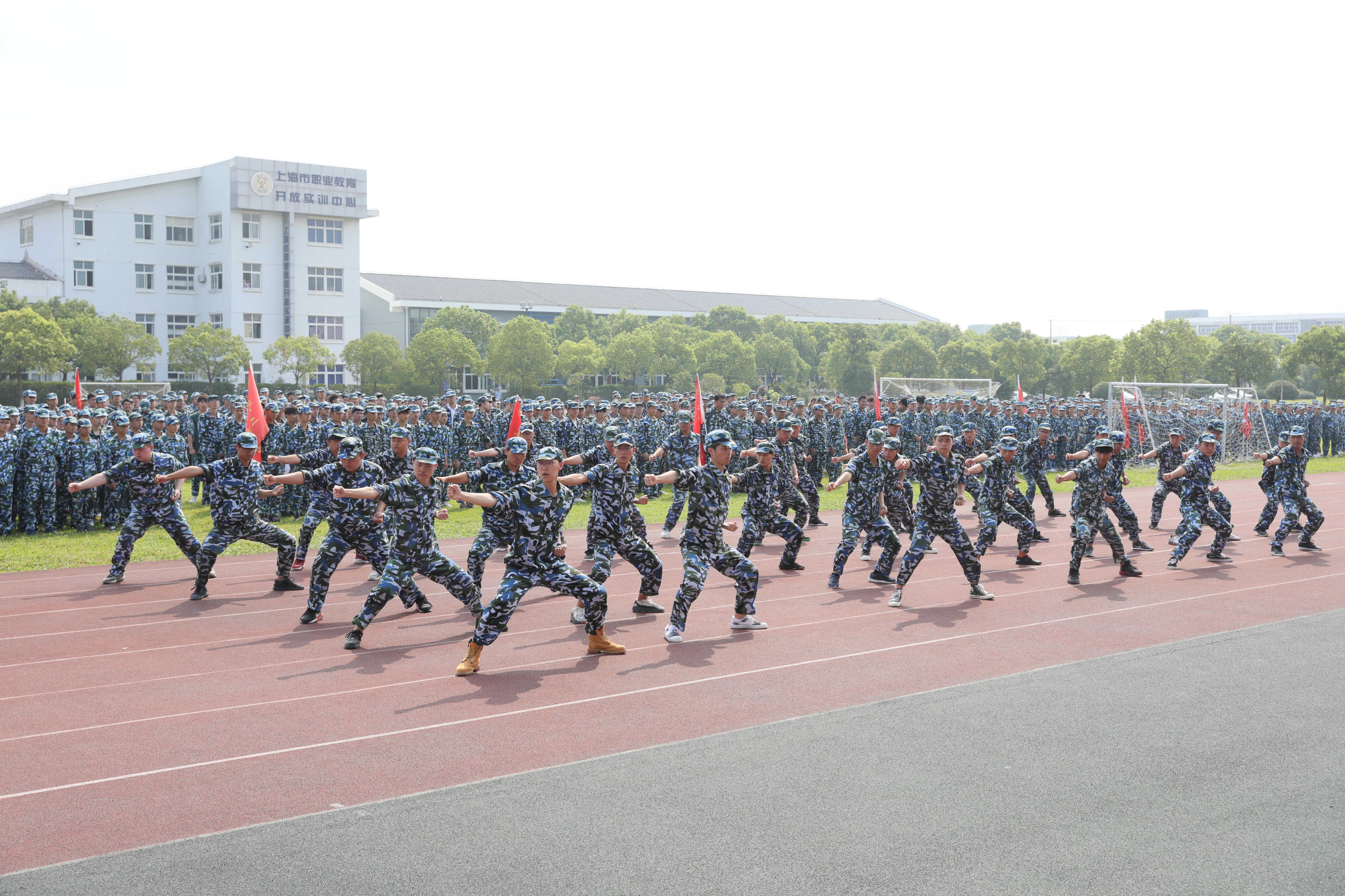 2019年9月2日至11日,学校组织开展了为期十天的军事训练,2018级学生及2019级中高职贯通班学生共3000余名参加。在参训学生、军训管理人员、全体教官的共同努力下,顺利完成了军训各项任务。9月11日上午,2018级学生军训闭营式在奉贤校区室外运动场举行。学校党委书记田钦、党委副书记、校长杨秀英、军训团副团长徐志强、党委副书记、纪委书记毛玉婷、党委副书记、副校长张涛、副校长窦争妍、副校长徐德明、副校长方林中等领导出席。