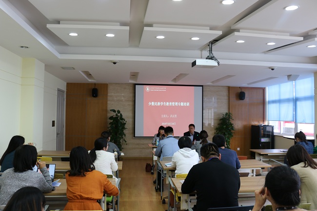 10月18日,学校邀请了中共十八大代表、国务院第六次全国民族团结进步模范个人、全国师德模范、上海市优秀思想政治工作者、上海高校辅导员年度人物、上海中医药大学辅导员、副教授洪汉英以《少数民族学生工作实务》为主题作专题讲座。学校党委副书记、副校长张涛主持讲座,各二级学院分管学生工作党总支副书记、学管办主任、全体辅导员、学工部相关人员共计60余人参加了本次培训。