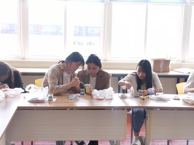 活动伊始,古丽老师介绍了中秋节的来历,向大家介绍了本次活动举办的初衷,为大家送上了双节祝福。在老师的讲解之后,同学们开始创作。一开始同学们还不上手,循规蹈矩地按老师的讲解小心地制作。在操作熟练后,同学们开动脑筋,利用现有工具,设计创作出各式各样的创意手工,中国地图、五星红旗、党旗、玉兔、彩虹、皮卡丘、绿水青山等……