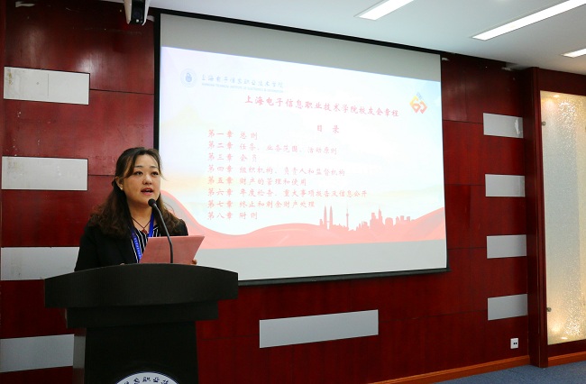 大会审议通过了《上海电子信息职业技术学院校友会章程》和《上海电子信息职业技术学院第一届理事会选举办法》,选举产生了第一届理事会理事。