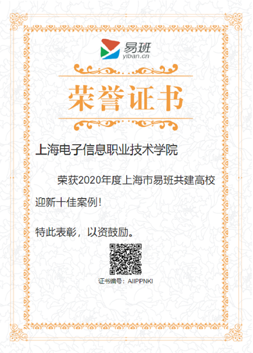 2020年度上海市易班共建高校迎新十佳案例,并作为全市唯一一所高职院校参加全国展示,有力提升了学校易班工作影响。(供稿单位:学工部)