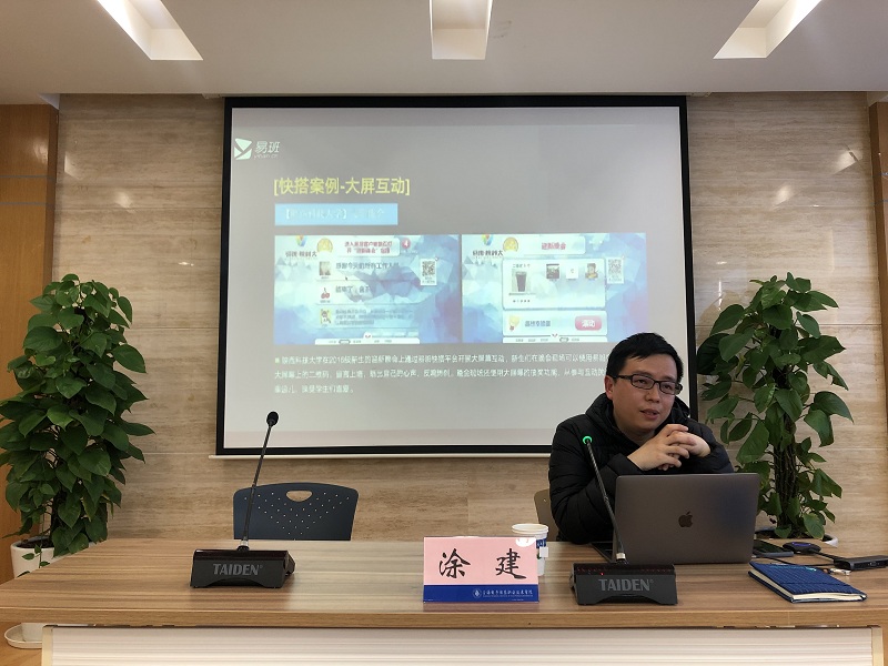 培训会上,涂建老师首先介绍了易班的概念、易班的发展历程、建设背景等,重点介绍了易班在学生管理中的作用。接下来,涂建老师围绕着“为什么建”、“建什么”、“怎样建”三个方面介绍了易班建设工作中各项功能的使用,并对注册、博文、轻应用等做了详细的介绍。他表示,易班建设工作是一项全局性工作,要统筹协调,从学生出发、从全线着眼、从难点突破,以“大思政”的理念推进易班建设,才能不断推出高品质的内容。讲座结束后,涂建老师跟老师们进行了交流互动,现场答疑解惑,气氛十分活跃。
