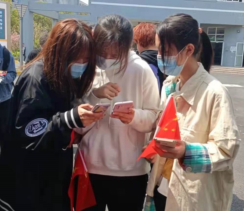 在现场志愿者的指导下,同学们拿出手机,扫码参加党史知识答题。随着指尖滑动,中国共产党建党百年的伟大历史、中华民族走过的沧桑历程映入眼帘,走向心尖。答题后,同学们可以在现场抽取盲盒,精美的小礼品引来一声声赞叹。