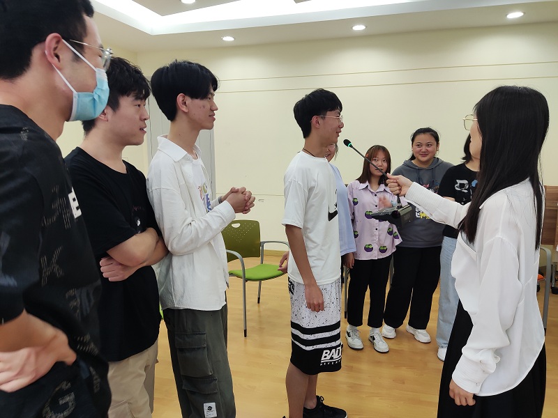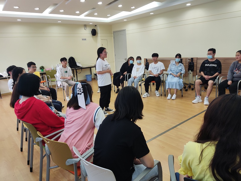 马子凤老师开场热身心理小游戏有“大风吹”和“进化论”,充分调动同学们热情参与。关系你我是评估人际交往中的自我与他人的社交距离,通过“马兰花开”分组,小组内进行选举队长、组名和口号,团队破冰游戏“名字串串烧”不仅让学生增加了解,也让小组成员更加熟悉,“优点轰炸”游戏是让学生增加自我认同,积极取向地看待自我、接纳自我,还进行了简单的自我认同感测评和分析,自我觉察的音乐放松体验。最后老师让大家谈谈自己参与活动的感受,同学们表示参与游戏跟大家交流的过程是轻松和愉快的,增进了彼此的了解。