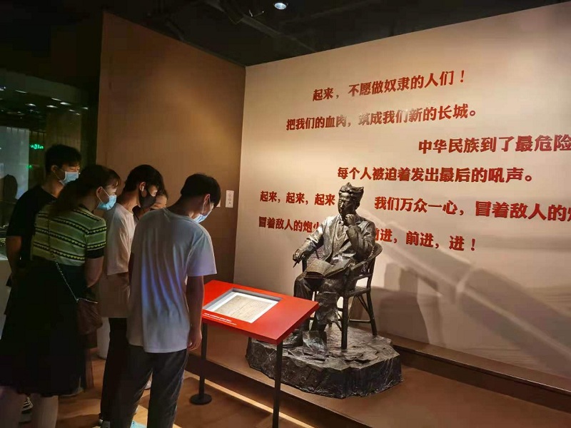 本次参观活动将上海市爱国主义教育基地——国歌展示馆作为起点。国歌展示馆是全国首家以国歌《义勇军进行曲》为主题的展示馆,曾经是《义勇军进行曲》为主题的进步电影《风云儿女》拍摄所在地,于2009年9月25日落成开放,由序厅、国歌诞生厅、国歌纪念厅、国歌震撼厅、我和国歌厅等6个部分组成。在参观过程中,同学们浏览了关于国歌的文献、文物和历史照片,深入了解国歌创作背后不平凡的故事,感悟国歌所蕴藏的丰富思想内涵与伟大民族精神。