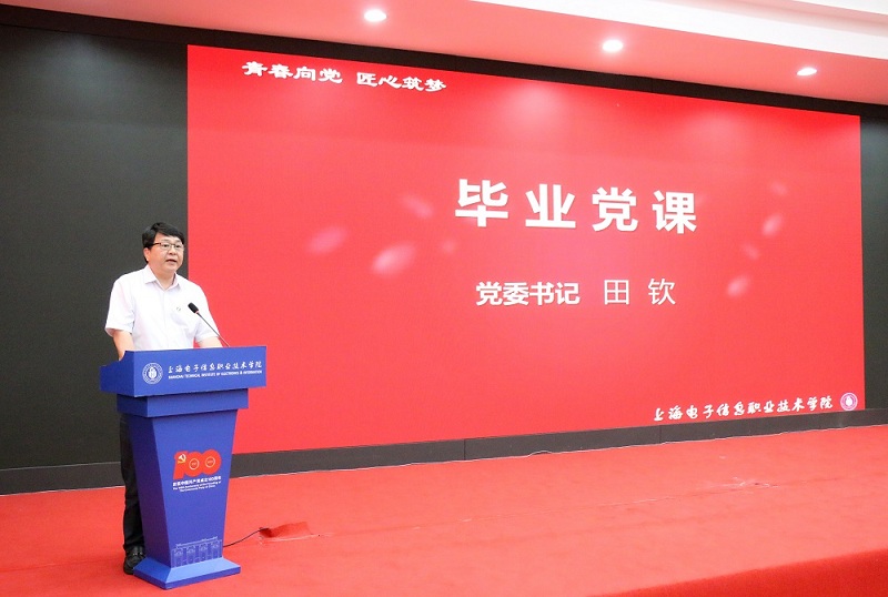 学校党委书记田钦为毕业生讲授毕业党课,在中国共产党成立100周年之际给即将远行的毕业生送上一份拼搏的力量和精神的激励。田书记说,短短几载时光,见证了同学们最青春、最热血、最美好的年华。毕业只是短暂的离别,离别是为了下一次的惊喜相逢。如今,学校已开启“十四五”新征程,希望广大同学继续倾心助力,共同推动学校迈向更新的辉煌。田书记感慨道,三年求学期间,同学们目睹了纪念“五四”运动100周年的盛况,亲历了庆祝新中国成立70周年的盛典。在令人难忘的2020年,同学们以各种方式勇敢地投身伟大的抗疫斗争,诠释了新时代大学生的社会责任感和担当精神。今年的毕业季又恰逢中国共产党成立100周年,同学们是与伟大的时代同向而行的一代人,是实现第二个百年奋斗目标的建设者、见证者。田书记给毕业生们提出三点期望:一是紧跟时代潮流,在砥砺奋进中彰显人生价值。站在“第一个百年目标”的起点上,正向着民族伟大复兴的“第二个百年目标”出发,新时代的电子信息人必须肩负起时代赋予的使命,担负起立志报国、砥砺奋斗的责任,报效国家、奉献社会、服务人民,为实现中华民族伟大复兴中国梦贡献自己的力量。二是以国家富强、人民幸福为己任,胸怀理想、志存高远。毕业后,同学们即将奔赴全国各地,投身工作岗位。初入社会或许有不适应,或许有压力,或许有迷茫,同学们要始终坚信“奋斗的青春最美丽”,投身中国特色社会主义伟大实践,并为之终生奋斗。三是要发扬工匠精神,用技能成就梦想。当下,是一个竞争激烈的时代,经历着5G、人工智能、大数据、生物技术、量子技术等诸多技术为代表的第四次工业革命。同学们面临着“天将降大任”的时代使命,无论是走上工作岗位还是继续深造,要把工匠精神融入每一个环节,胸怀技能强国的抱负,刻苦钻研、追求卓越,用匠心引领技艺成就自己的梦想。
