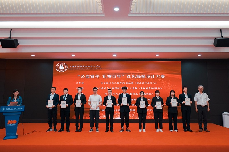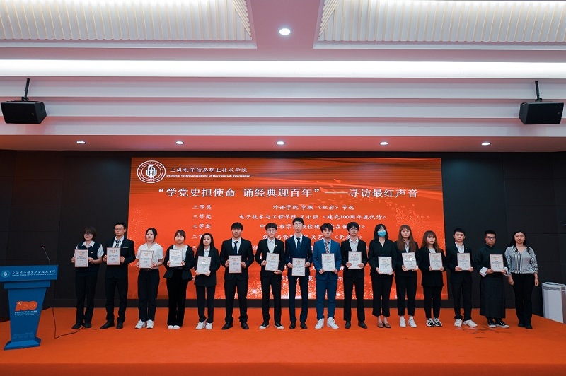 二级学院学生工作负责领导陈真、姜涛、吴亚人、倪娜、高晓昧、施云美分别为“百人百地迎百年”系列活动之“传承红色基因 弘扬革命传统”微视频征集大赛、“邮记百年”定制邮票作品征集比赛、“公益宣传 礼赞百年”红色海报作品设计大赛、“学党史担使命 诵经典迎百年”寻访最红声音、“青春向党 匠心筑梦”2021届毕业生纪念品设计大赛、“讲好党史故事 传承红色基因”红色故事征集等六项活动的获奖学生颁发证书。