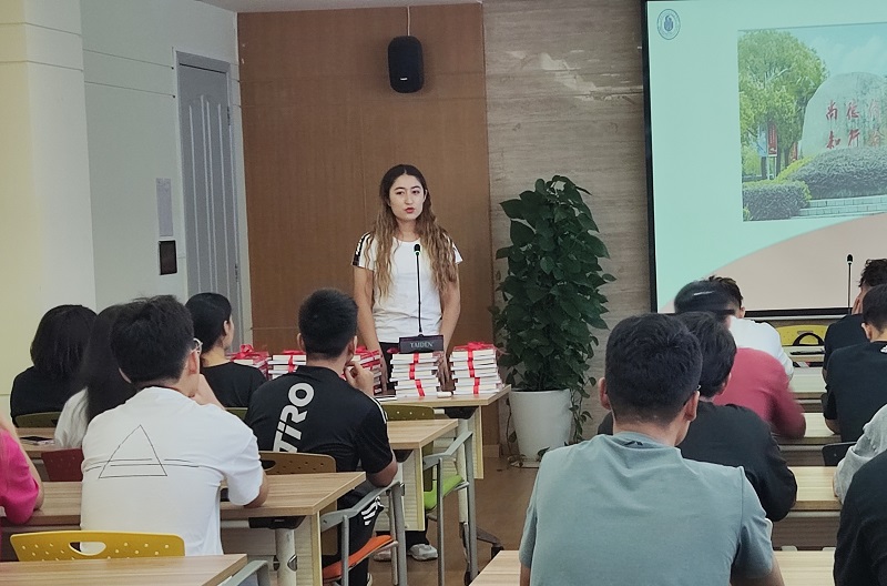 古丽老师首先传达了2021年8月27日在北京召开的中央民族工作会议上习近平总书记的重要讲话精神。她讲到,习总书记在中央民族工作会议中强调,以铸牢中华民族共同体意识为主线,坚定不移走中国特色解决民族问题的正确道路,构筑中华民族共有精神家园,促进各民族交往交流交融。近年来,我校在民族学生教育管理工作上坚持“完善机制、培育文化”战略,从生活、学习等多个方面对少数民族学生进行全方位培养。