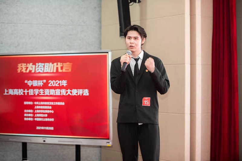 2021年11月26日下午,“我为资助代言”2021年上海高校十佳学生资助宣传大使评选活动在上海市学生事务中心举办。我校电子技术与工程学院艾合巴里江·亚森作“给流动儿童在城里安个家“主题演讲,成功入选上海高校十佳学生资助宣传大使,荣获一等奖。