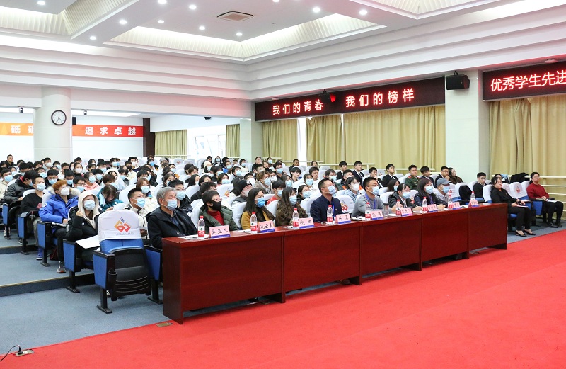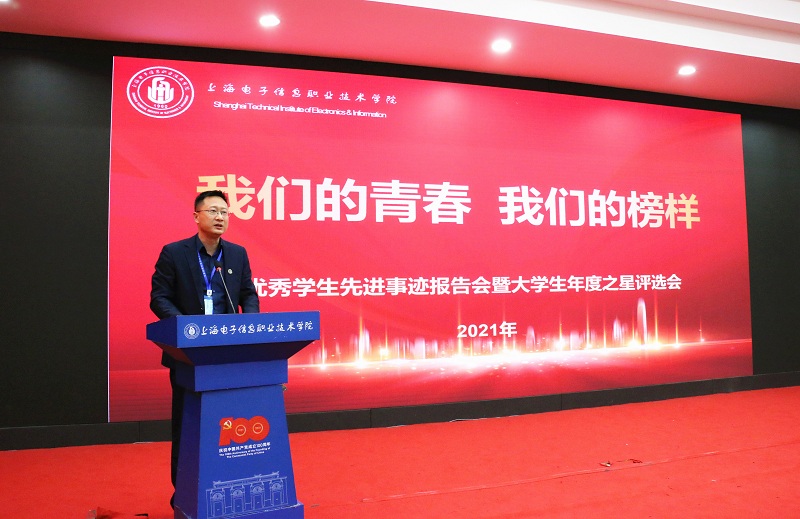 赓续育人初心,献礼建党百年。2021年12月2日晚17时,学校第三届“我们的青春,我们的榜样”优秀学生先进事迹报告会暨2021年大学生年度之星评选会在C108报告厅顺利举行。来自各二级学院的12位年度之星候选人进行精彩汇报。学校党委副书记、副校长张涛,学工部及各二级学院学生工作负责同志及现场百人学生评审团担任评委。
