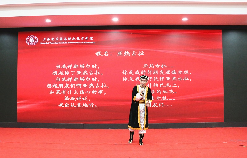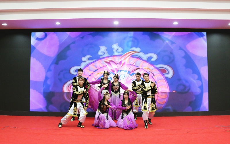 少数民族学生献上歌曲《亚热古拉》和舞蹈《刀郎舞》,富有民族特色的精彩表演赢得了现场观众的阵阵掌声。