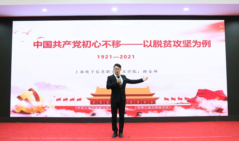 在学生才艺展示环节,郎金坤作以《中国共产党初心不移——以脱贫攻坚为例》为题的党史宣讲,真挚的情感打动着每一位现场观众;