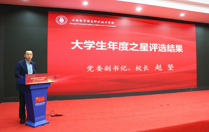 颁奖仪式上,学校党委副书记、校长赵坚宣布学校2021年大学生年度之星评选结果。