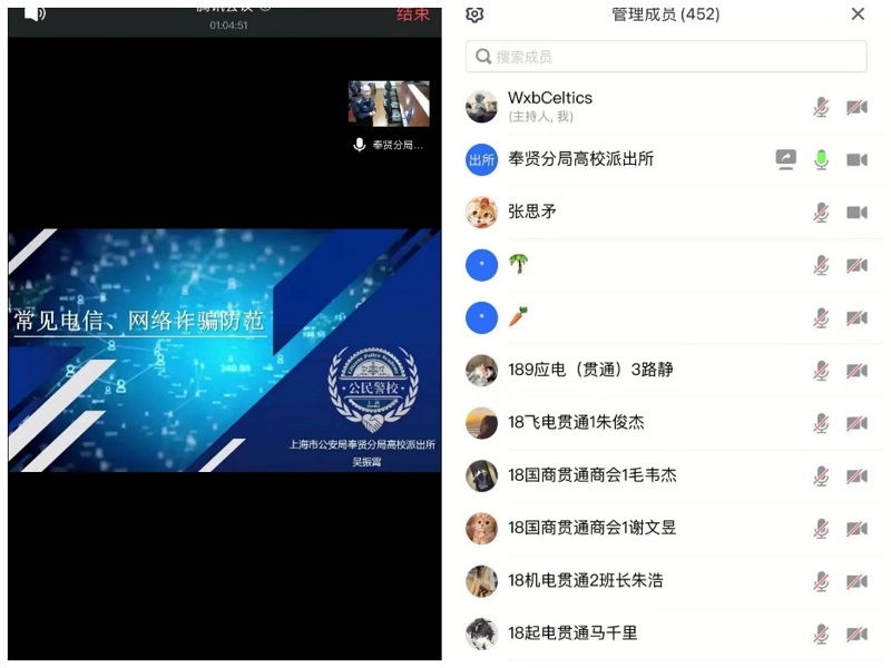 吴振霄警官从“什么是诈骗”引入,结合工作中的真实案例,详细介绍了“兼职刷单”“博彩投资”“杀猪盘”“客服退款”“QQ盗号”“冒充公检法”等常见的网络诈骗手段及防范措施。吴警官指出,近年来,由于各类互联网平台、手机APP的快速发展,一些网络借贷平台、不法分子不断向高校拓展业务,学生群体虽然有丰富的网络知识,但缺乏社会阅历、理财意识,加之好奇心重,对一些新生事物的判断力相对匮乏,因而很容易成为犯罪分子涉猎的目标,同时,各种不良网贷、电信诈骗又具有形式多样、隐蔽性强、追赃难度大的特点,一旦案件发生,受害人的损失往往很难找回,最终造成严重后果。他再三提醒同学们要提高风险防范意识,理性消费,一旦发生被骗情况,一定要及时寻求学校、家长及警方的帮助。