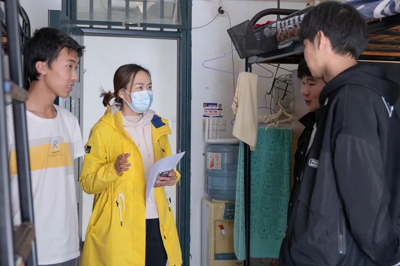 辅导员通过召开线上主题班会、走访宿舍等方式,以“严格准封闭管理期间我们怎么做”为主题,围绕“当前新冠肺炎疫情防控形势”、“学校疫情防控总体情况”、“校园防疫工作井然有序”、“同心战‘疫’战胜疫情”四个方面,号召全体学生,在校园严格准封闭管理期间要认真遵守学校有关规定,配合学校,与学校同频共振,共同努力,做好疫情防范工作,坚决打赢校园疫情防控阻击战。