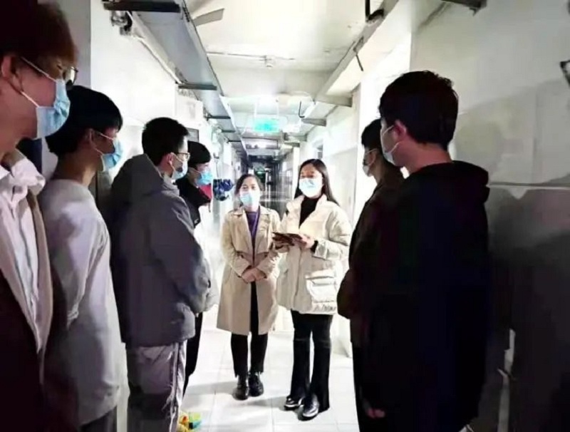 为全面落实学校疫情防控工作要求,打好疫情防控阻击战,保障全院学生健康安全,守护校园,维护校园安全稳定良好局面,机械与能源工程学院组织全体辅导员在各班开展了“携手同心、共同战疫”主题教育工作。我院党总支副书记、副院长倪娜,带领辅导员尹立军、高文萍老师深入学生宿舍,围绕“严格准封闭管理期间我们怎么做”主题,给同学们讲解了当前新冠肺炎疫情防控形势,以及学校目前疫情防控总体情况。随后,倪娜老师与学生进行了深入交谈,详细了解学生在校情况以及学习、生活等方面存在的困难,嘱咐学生做好自我调节。班会最后,同学们纷纷表示:一定严格遵守学校严格准封闭管理的各项疫情防控规定,坚决杜绝外卖和快递。