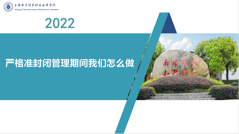根据上海市疫情防控工作统一部署,学校实行严格准封闭管理。严格准封闭管理期间,电子技术与工程学院学生工作团队继续奋战在抗疫一线。学院对全体学生开展了严格准封闭期管理的主题教育活动,主题教育中,每位辅导员都将学校统一的严格准封闭期间我们怎么做给同学们作了讲解。