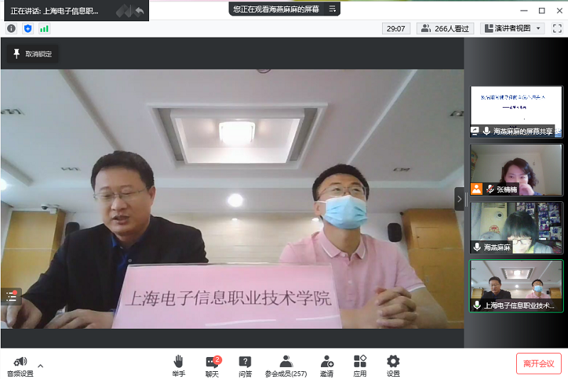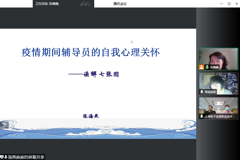 当前,疫情防控工作正处于最吃劲的关键阶段。随着校园闭环管理时间越来越长,辅导员等一线工作人员的心理关怀及自我减压显得尤为重要。4月23日下午,由上海高校心理咨询协会高职高专工作委员会(高职高专委员会)主办、我校承办的公益培训项目——《疫情防控期间辅导员的心理自我关怀》顺利举办,上海学校心理健康教育名师工作室主持人张海燕教授主讲。学校党委副书记、副校长张涛出席并致辞,会议由高职高专委员会主任、学校心理名师工作室负责人张楠楠副教授主持。