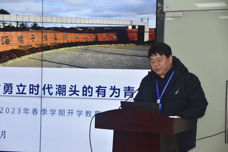 为全面贯彻落实党的二十大精神,引导学生厚植爱国情怀,动员学生以蓬勃奋发的精神风貌迎接新的学期,2月23日下午,党委书记田钦、党委副书记、院长赵坚带头走上讲台,以“学习贯彻党的二十大精神,做勇立时代潮头的有为青年”为主题为同学们讲授春季“开学第一课”。