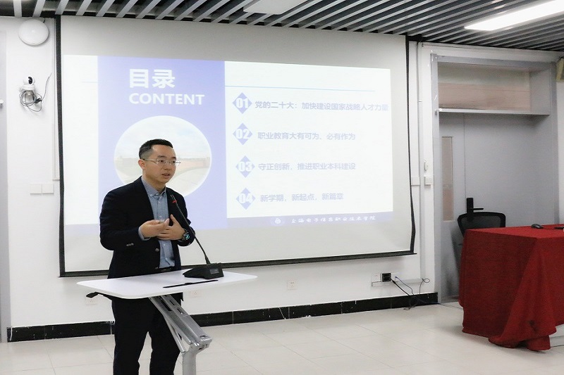 田书记和赵院长通过讲述“党的二十大:加快建设国家战略人才力量”、“职业教育大有可为、必有作为”、“守正创新,推进职业本科建设”、“新学期,新起点,新篇章”四个篇章,带领同学们深入解读党的二十大精神所蕴含的科学理论,表达了学校创建职业本科的坚定信心,激励同学们要立大志、明大德、成大才、担大任。