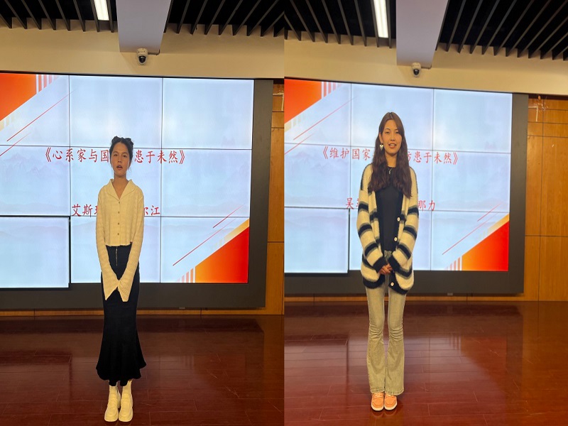 活动第二项,由艾斯玛·乌买尔江和吴勒波森·特色那力两位同学进行“维护国家安全,防患于未然”的主题演讲。通过演讲,同学们充分认识到国家安全的重要性,对相关的法律法规也有了较为清晰的认识。
