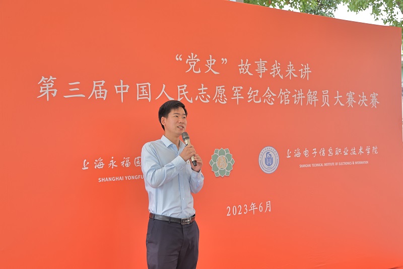 2023年是全面贯彻落实党的二十大精神的开局之年,也是中国人民志愿军抗美援朝出国作战70周年,伟大的抗美援朝战争,弘扬了中国共产党和人民军队的革命精神,奏响了一曲曲可歌可泣的凯歌,锻造出伟大的抗美援朝精神。为进一步加强我校大学生“党史”学习教育,引导学生树立对马克思主义的信仰、对中国特色社会主义的信念、对中华民族伟大复兴中国梦的信心,6月16日,我校与共建育人基地、上海永福园(上海中国人民志愿军纪念馆)联合举办的“党史”故事我来讲暨第三届中国人民志愿军纪念馆讲解员大赛圆满落幕。上海永福园总经理徐汶强、办公室主任徐东,学校学工部副部长吴奇峰等出席活动,并邀请上海永福园(上海中国人民志愿军纪念馆)副总经理王雅萍、奉贤博物馆展陈教育部主任崔佳梅,上海中国人民志愿军纪念馆讲解组组长康佳慧担当评委。