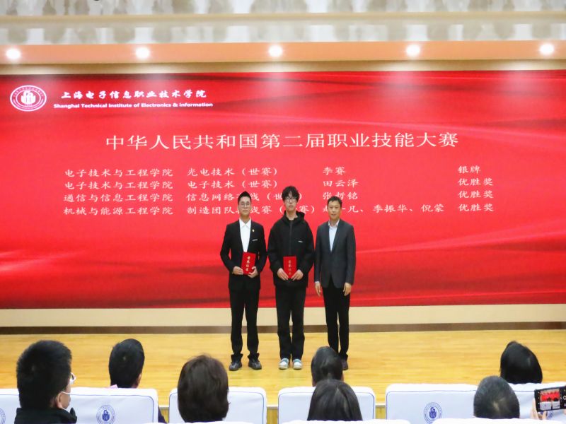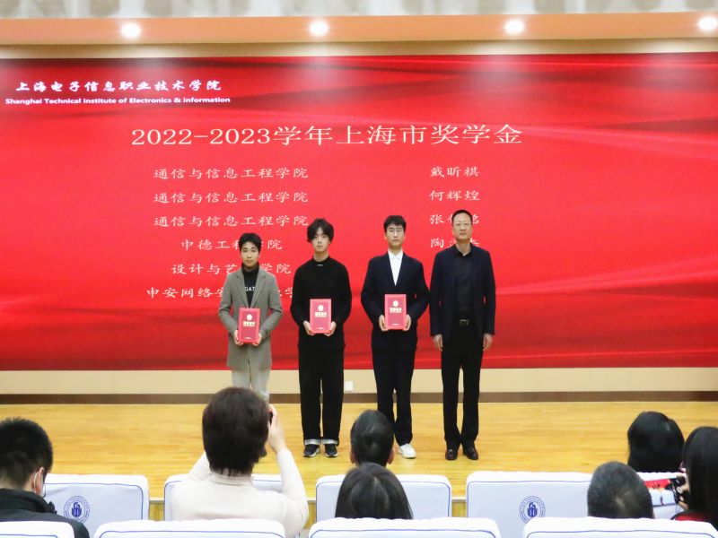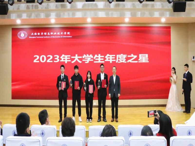 申安网络安全产业学院梁雅婷、通信与信息工程学院张琦、机械与能源工程学院王世雄、经济与管理学院金紫怡、电子技术与工程学院李赛分别荣获2023年学校“尚德之星”“笃学之星”“竞攀之星”“弘美之星”“致用之星”。电子技术与工程学院钟顺瀚、中德工程学院卓创团队、通信与信息工程学院张经纬、设计与艺术学院唐韵、机械与能源工程学院赵一凡获2023年学校大学生年度之星提名奖。傅建勤书记为5名年度之星和5位提名奖同学颁发证书、奖杯。