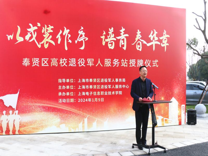 1月9日,由上海市奉贤区退役军人事务局指导,上海市奉贤区退役军人服务中心主办,我校承办的“以戎装作序,谱青春华章”奉贤区高校退役军人服务站授牌仪式在奉贤校区举行。