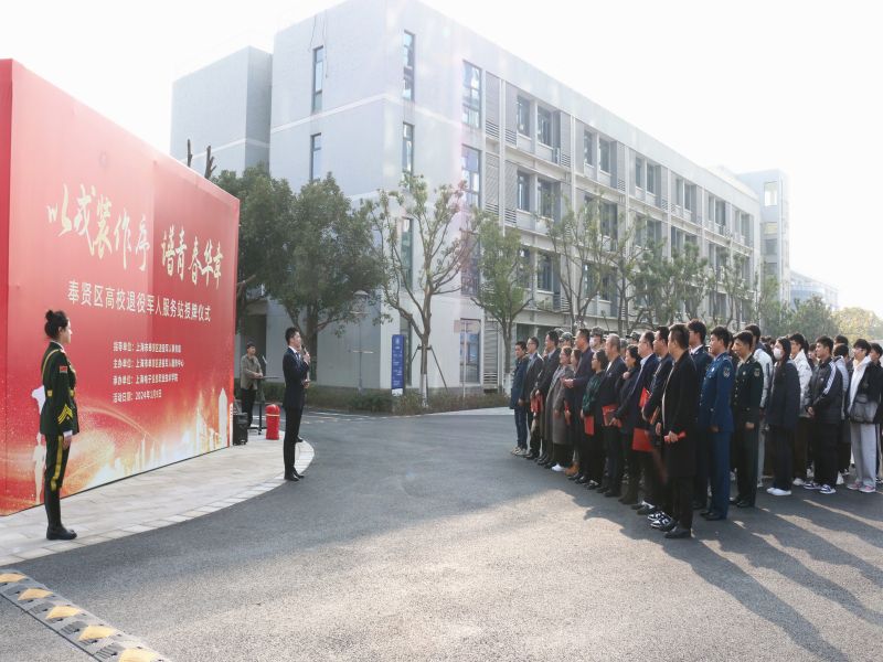 近日,由上海市奉贤区退役军人事务局指导,上海市奉贤区退役军人服务中心主办,我校承办的“以戎装作序,谱青春华章”奉贤区高校退役军人服务站授牌仪式在奉贤校区举行。上海市奉贤区退役军人事务局党组成员、副局长宋钱华,学校党委副书记、副院长张涛,上海市奉贤区退役军人服务中心主任俞晓贇,上海市奉贤区退役军人服务中心副主任金卫、上海市奉贤区退役军人服务中心优抚保障科科长邵露艳,奉城镇、庄行镇、海湾旅游区退役军人服务站负责人,上海城建职业学院、上海旅游高等专科学校和我校武装部老师,以及退役大学生士兵代表参加授牌仪式。