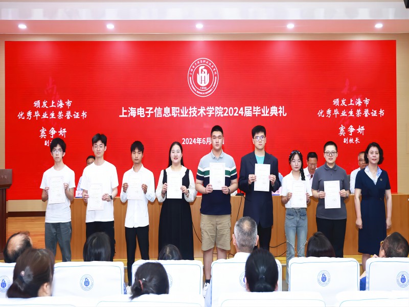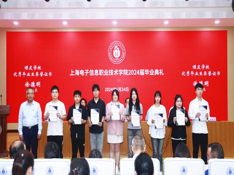 学校党委副书记、纪委书记丁磊宣读《关于表彰上海电子信息职业技术学院2024届优秀毕业生、“就业之星”的决定》,对邵逸男等124位2024年度上海市优秀毕业生,何美红等187位2024年度学校优秀毕业生,刘文瑞等41位2024届毕业生“就业之星”予以表彰。