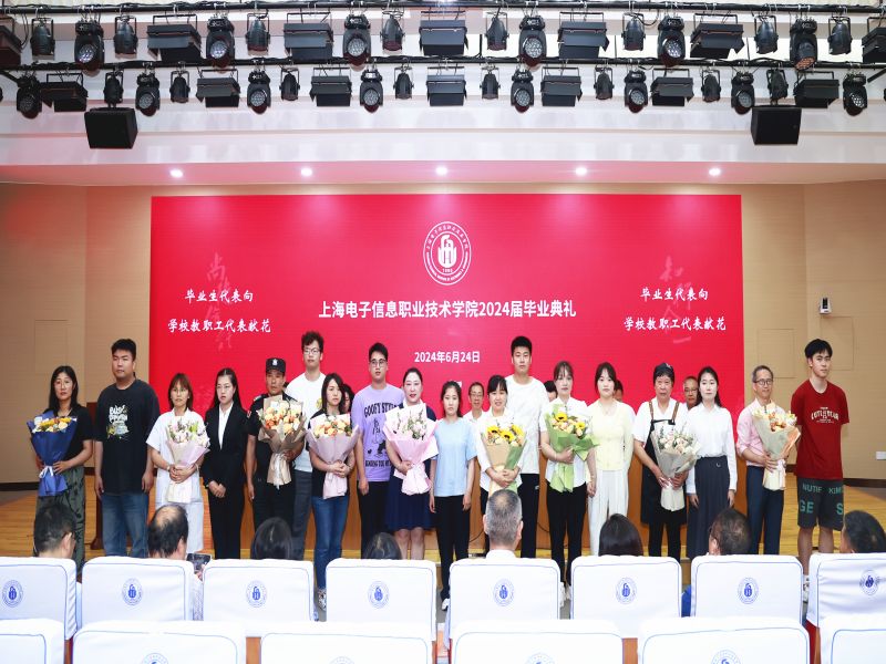 6月24日下午,上海电子信息职业技术学院2024届学生毕业典礼于奉贤校区举行。学校领导傅建勤、赵坚、丁磊、张涛、窦争妍、徐德明、方林中出席本次典礼。二级学院党政领导、教师代表、毕业班辅导员和2024届毕业生代表参加典礼。典礼由学校党委副书记、副院长张涛主持。