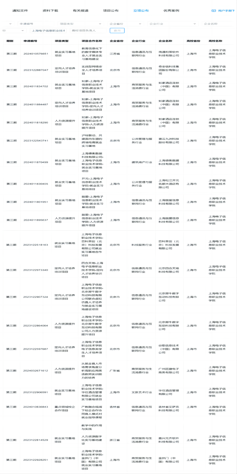 教育部第三期供需对接就业育人项目立项名单如下(上海电子信息职业技术学院)