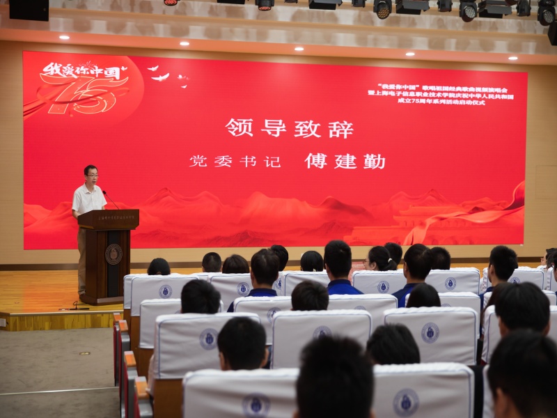 为庆祝中华人民共和国成立75周年,9月25日下午,《我爱你中国》歌唱祖国经典歌曲视频演唱会暨学校庆祝新中国成立75周年系列活动启动仪式在奉贤校区C108报告厅举行。中共第十七届中央委员,全国政协第十二届常委,中国人民解放军原总政治部副主任兼军纪委书记童世平上将,学校党委书记傅建勤,党委副书记、副校长张涛,上海永福园陵有限公司总经理、上海中国人民志愿军纪念馆常务馆长徐汶强出席活动,学校党办、组织部、宣传部、马克思主义学院、学工部、团委等部门负责同志,各二级学院学生工作负责领导、学管办主任、全体辅导员、学生代表,共计300余人参加。