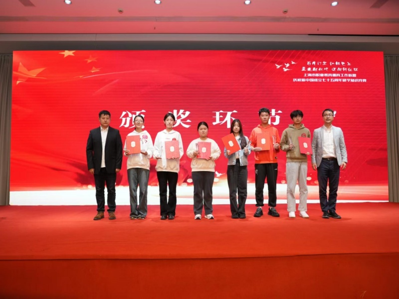 11月3日,由上海市教育委员会德育处指导、上海市职业教育德育工作联盟主办、联盟各成员单位共同承办的“石库门里 红船之上 重走起航地 迈向新征程”庆祝新中国成立75周年研学知识竞赛线下决赛在嘉兴南湖举行。上海市职业教育德育工作联盟理事长单位、上海电子信息职业技术学院党委副书记、副院长张涛,上海旅游高等专科学校学工部部长房定斌,上海工艺美术职业学院学工部部长张哲,上海电子信息职业技术学院学工部部长栾文飞,上海教育报刊总社上海教育分社市场部主任张昭,上海电子信息职业技术学院学工部副部长吴奇峰观摩比赛并为获奖选手颁奖。