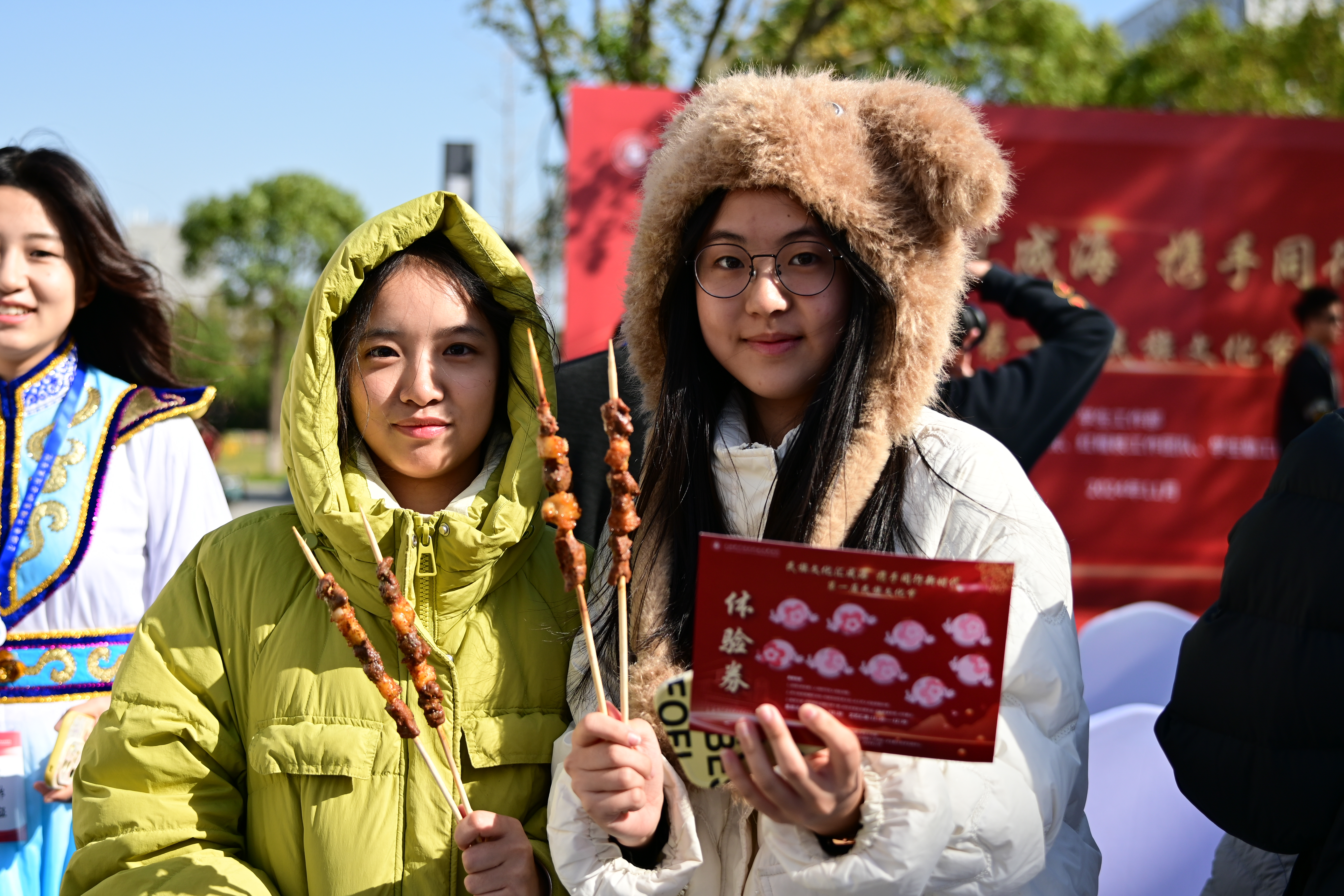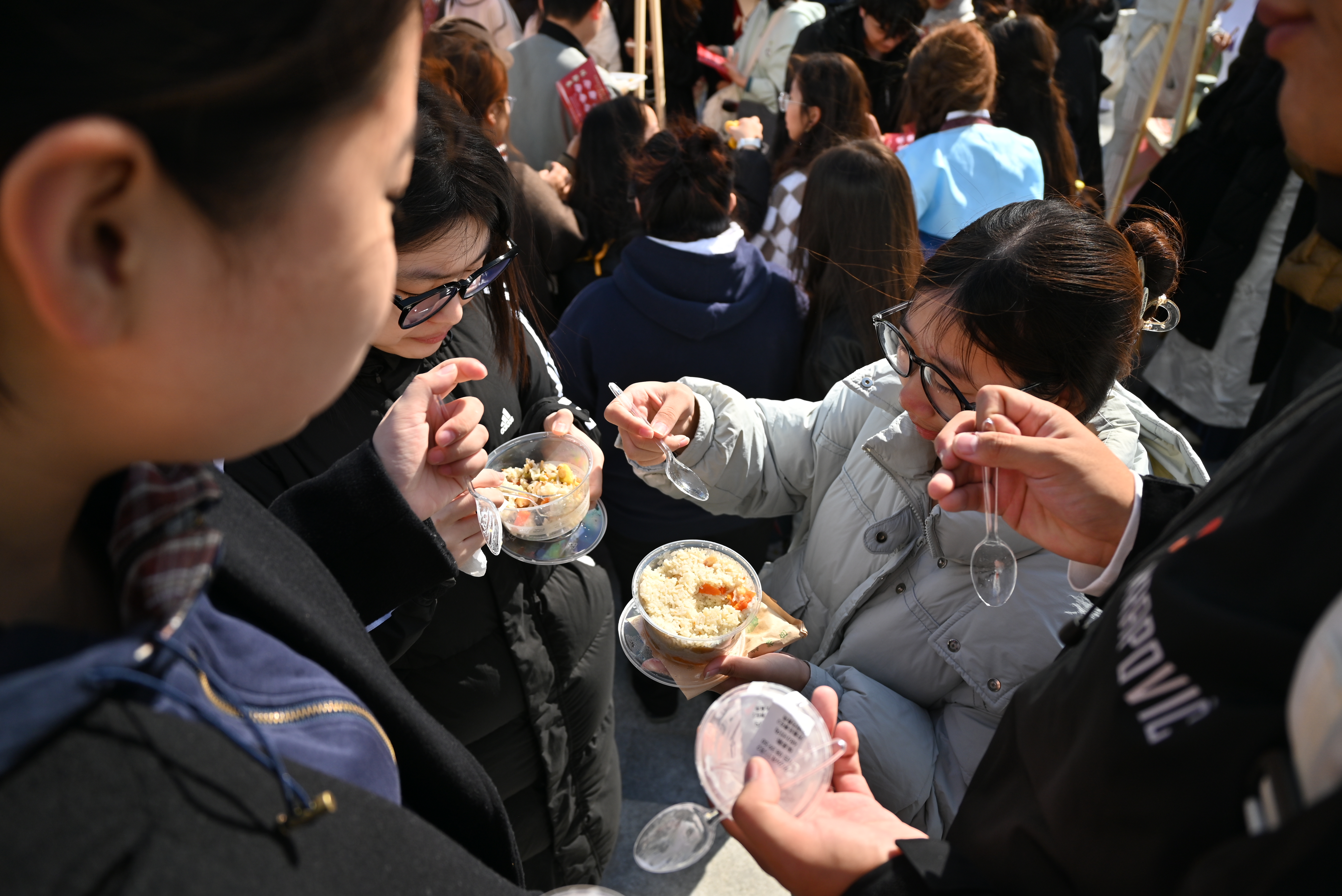 美食,是民族文化中最具烟火气的部分。美食体验区为同学们开启了一场舌尖上的奇妙旅行,烤羊肉串滋滋冒油、香气四溢,供不应求;奶茶醇厚浓郁、暖人心扉,使得这个冬天很温暖;鲜花饼酥软可口、花香弥漫,好像整个春天都被藏在心里。更有饺子、烤包子、抓饭、黏豆包、手工酸奶、特色干果、奶制品等汇聚各民族特色的美食让同学们的味蕾尽情舞蹈,在品尝美食的同时,深刻领略各民族独特的饮食文化魅力,感受美食背后蕴含的浓郁民族风情与人文情怀。