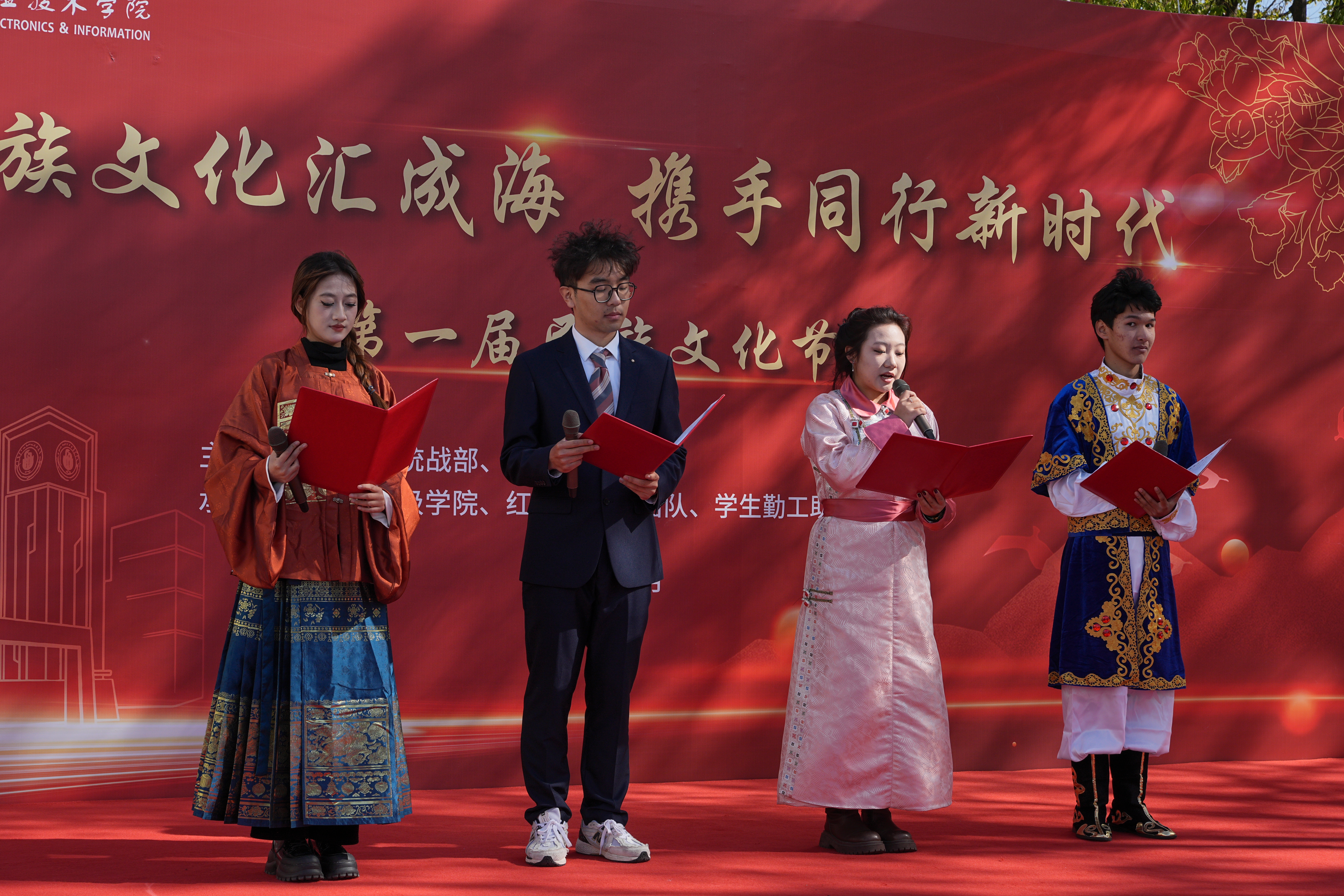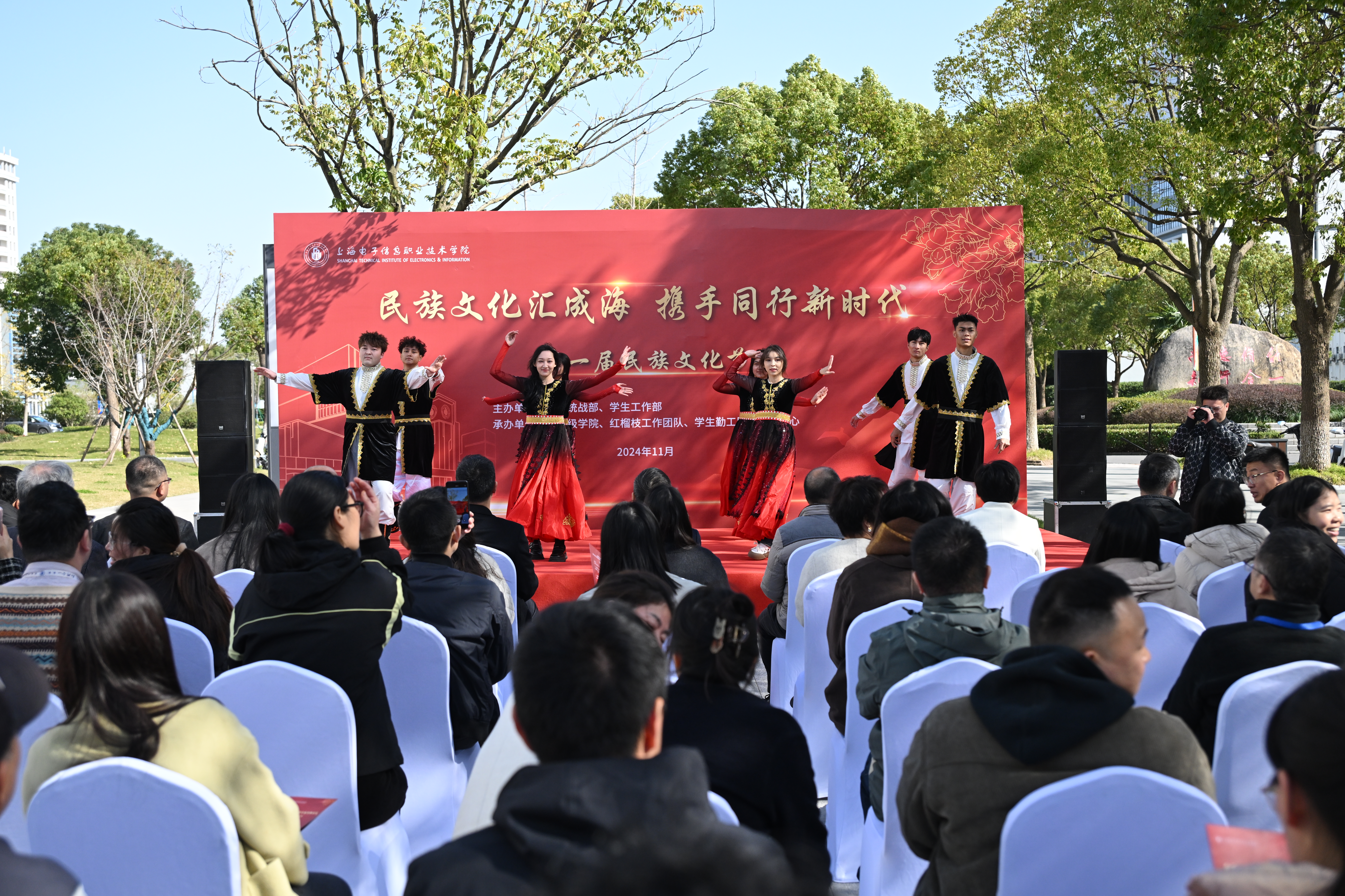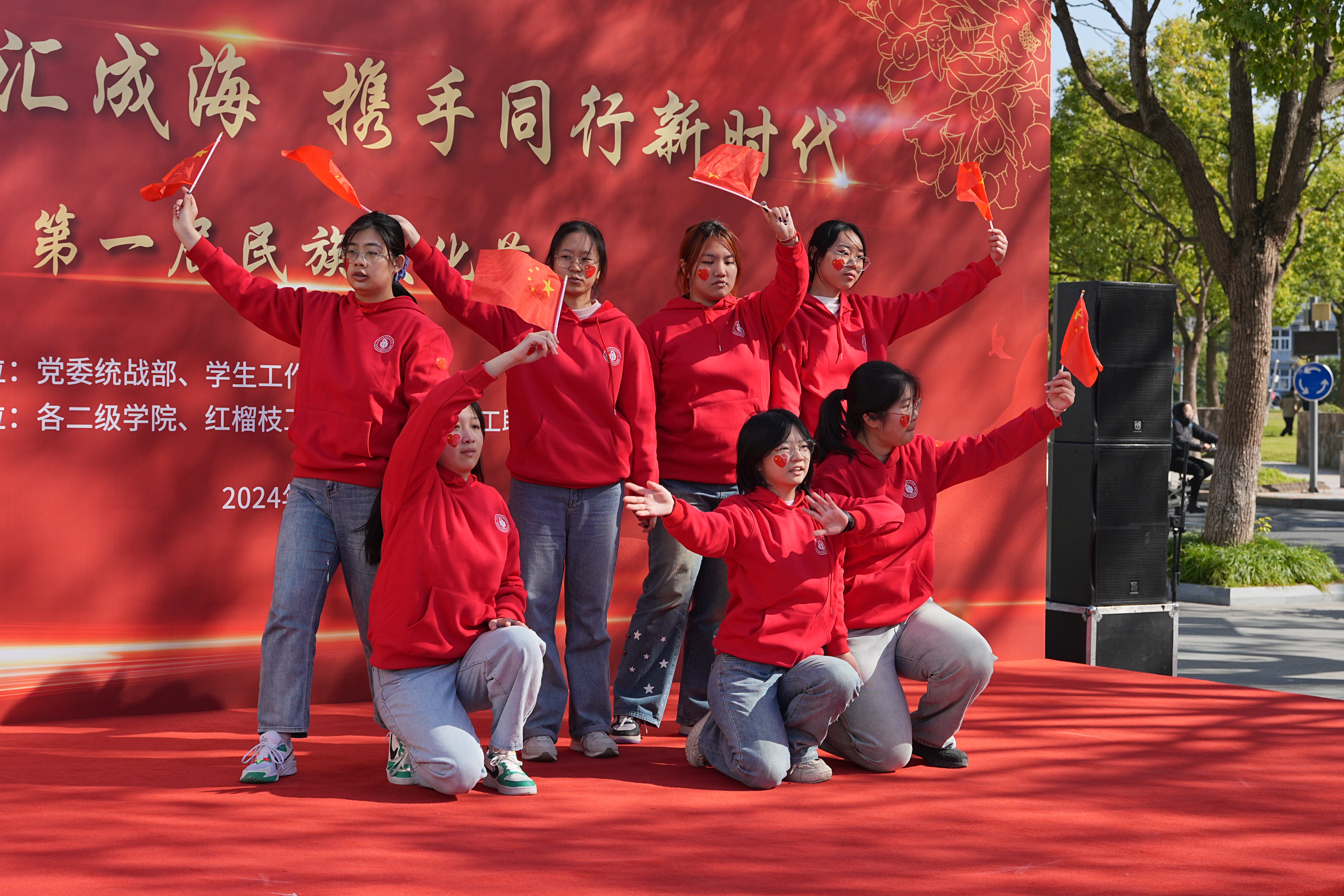 11月28日,由学校党委统战部、学生工作部联合主办,各二级学院、红榴枝工作团队、学生勤工助学实践中心共同承办的“民族文化汇成海 携手同行新时代”学校第一届民族文化节成功举办。学校党委书记傅建勤,党委副书记、纪委书记丁磊,党委副书记、副院长张涛出席活动。党委办公室、党委组织统战部、党委宣传部、学生工作部、后勤保卫处、团委等部门负责人,各二级学院学生工作负责人及师生代表参加活动。现场气氛热烈,师生其乐融融。