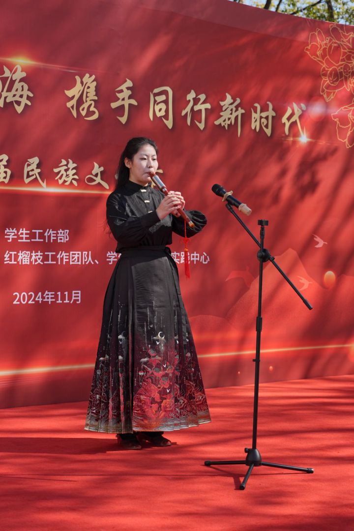 随着傅建勤书记宣布第一届民族文化节正式启动,文艺汇演正式开始。来自各民族的学生通过歌曲、舞蹈、朗诵、乐器演奏等多种形式,编织出一幅幅流动的民族文化画卷。每一个节目,都是对民族文化的深情致敬,每一次掌声,都是对民族团结的热烈回应。同学们用多元的文化、团结的信念、交融的情感展示校园文化育人的靓丽风景,共同奏响中华民族一家亲的和谐旋律。