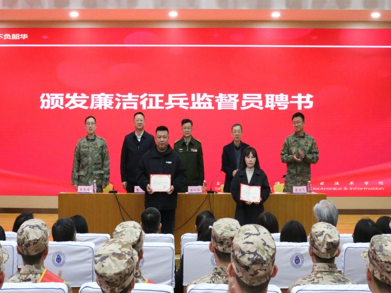 会上,与会领导为学校2024年度征兵工作先进集体和个人颁发了奖牌和证书,为学校廉洁征兵监督员代表颁发了任职聘书;机械与能源工程学院党总支书记米红林、经济与管理学院党总支书记吴淑芳作为二级学院代表签订了廉洁征兵承诺书。学校武装部副部长吴奇峰宣读学校2025年上半年预定新兵名单及分配情况。