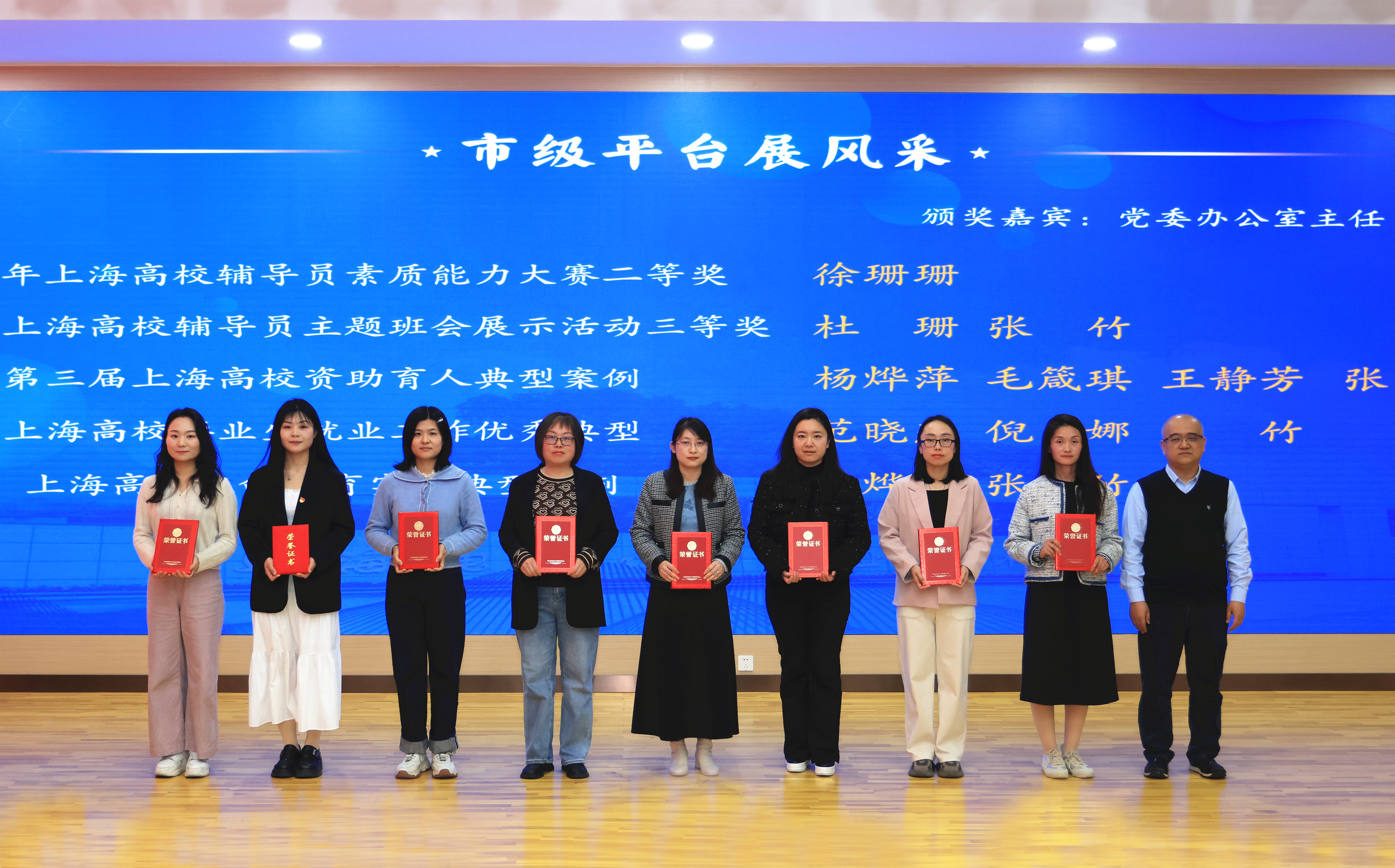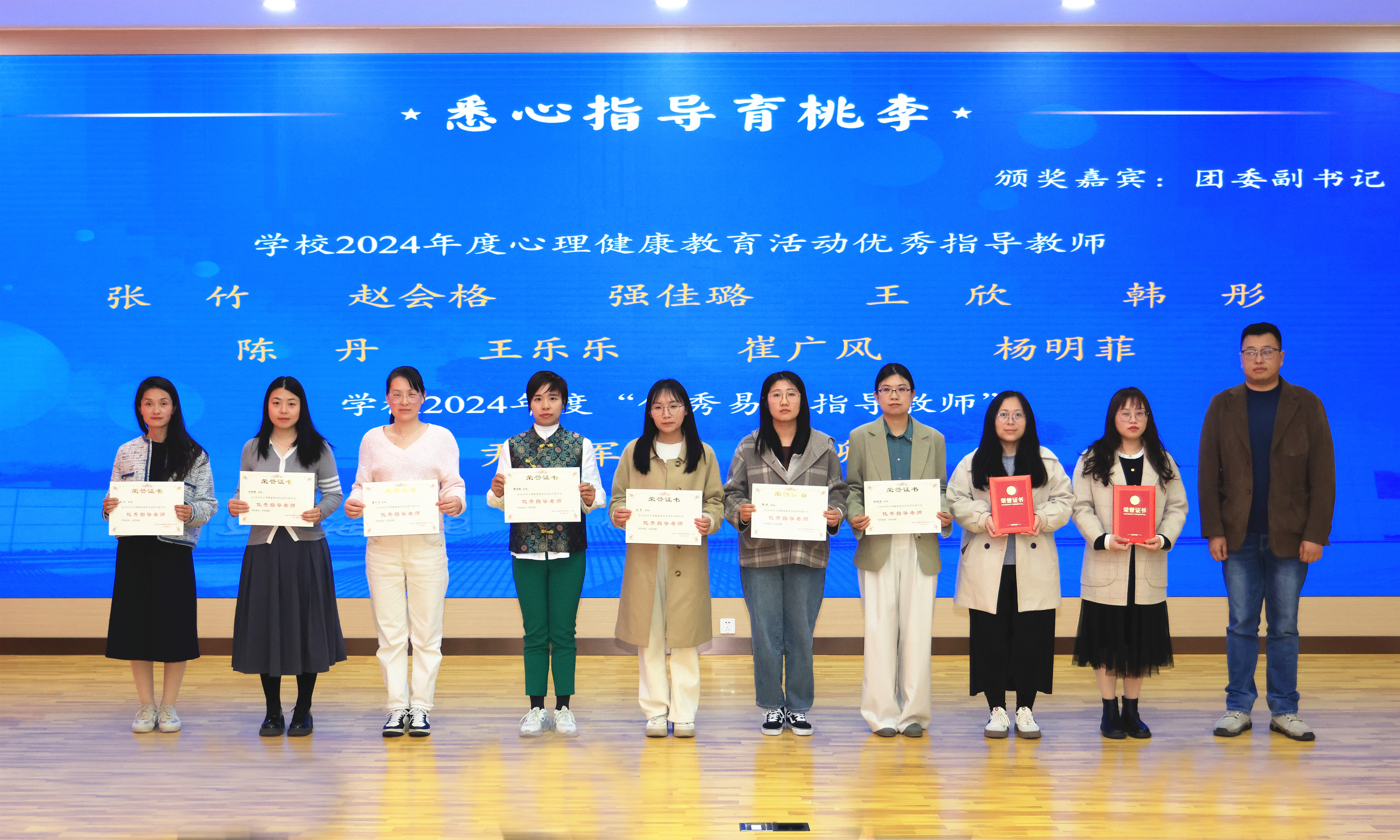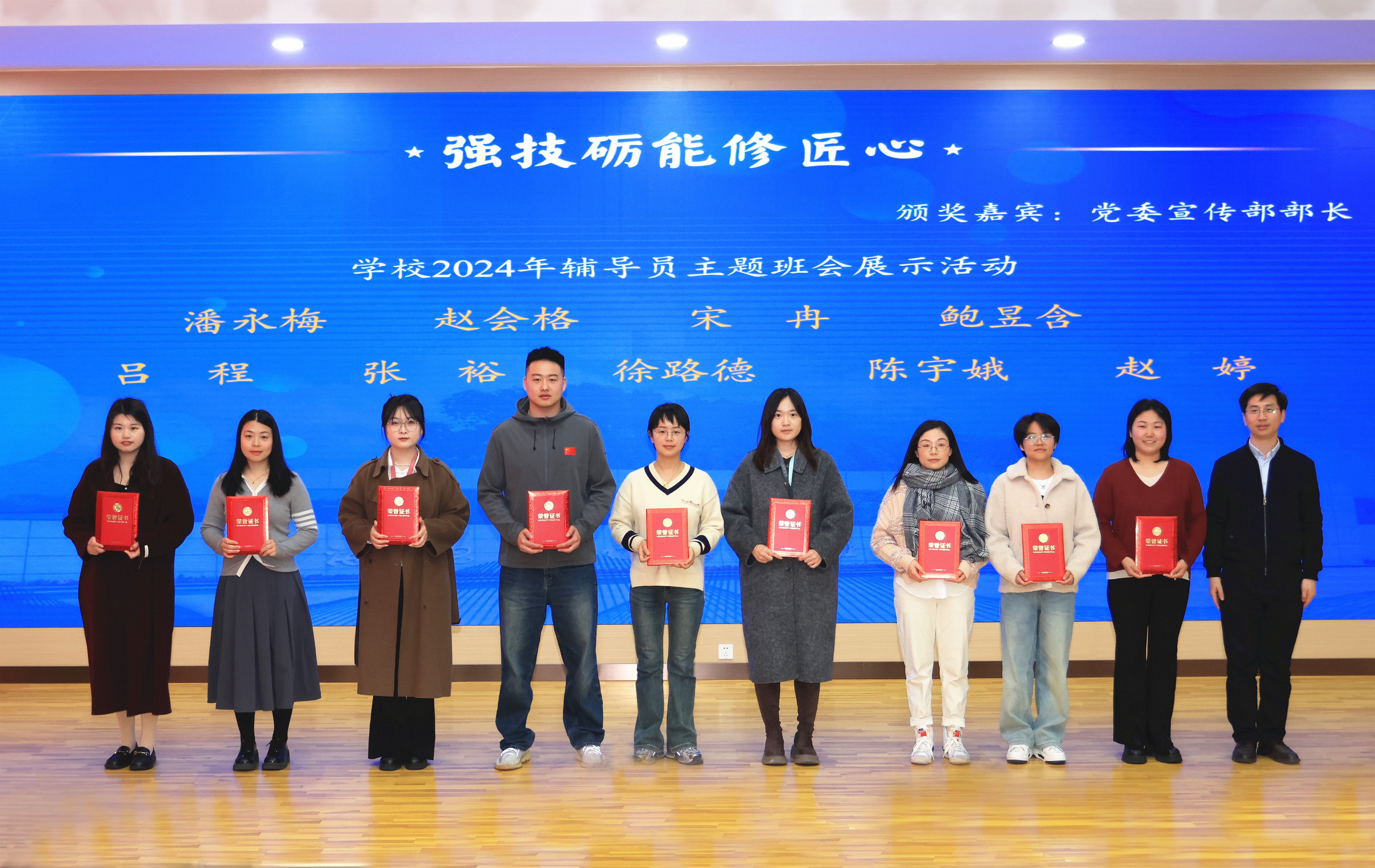 党委办公室主任李涛、党委组织部部长沈莉、党委宣传部部长张贯彻、人事处处长张峻颖、团委副书记何川为获奖代表颁奖。