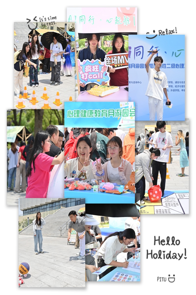 仪式结束后,师生共同参与了心理游园会。游园活动以探索自我·联结他人为主线,分为春、夏、秋、冬四个篇章、10余个趣味心理活动项目,吸引了广大师生踊跃参与,在轻松氛围中缓解压力,愉悦身心。
