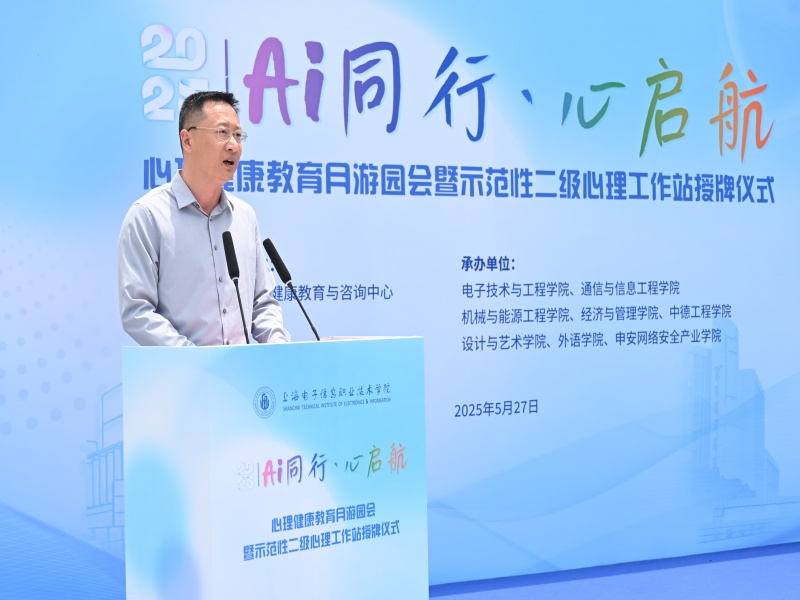 5月27日,我校“AI同行,心启航”2025年心理健康教育月游园会暨示范性二级心理工作站授牌仪式在奉贤校区顺利举行。学校党委副书记、副院长张涛,学生工作部部长、学生处处长栾文飞,各二级学院分管学生工作党委副书记、二级心理工作站负责老师、学校心理健康教育与咨询中心全体教师和学生代表共同参加。