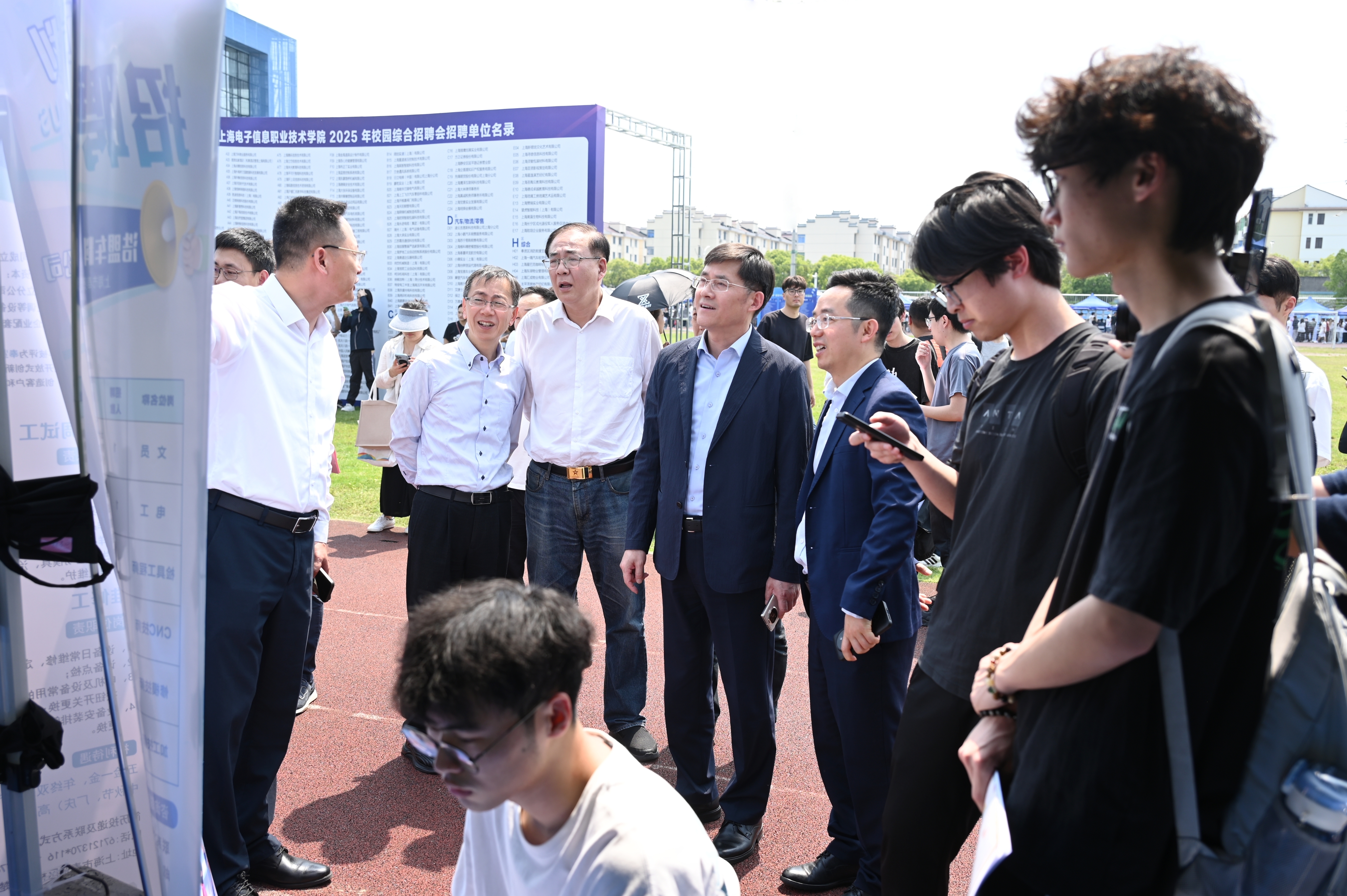 临港新片区管委会副主任苗挺,上海市教委副主任王浩共同启动上海电子信息职业技术学院2025年校园综合招聘会